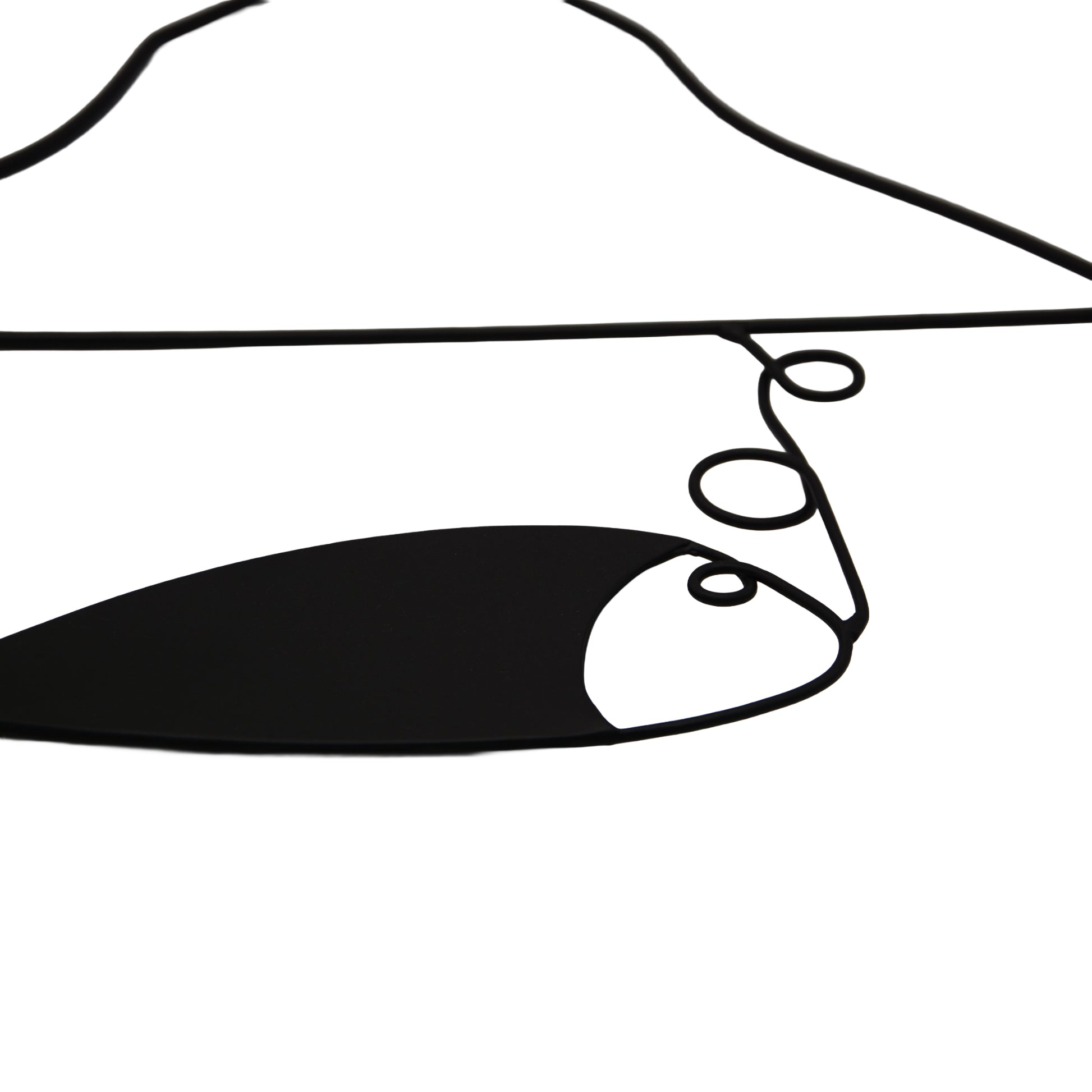 Die filigrane Wandkunst aus schwarzem Metalldraht zeigt einen stilisierten Fisch, der scheinbar in einer Glühbirne schwimmt. Dieses originelle Design zieht die Blicke auf sich und regt zum Nachdenken an – perfekt für alle, die das Außergewöhnliche schätzen.
