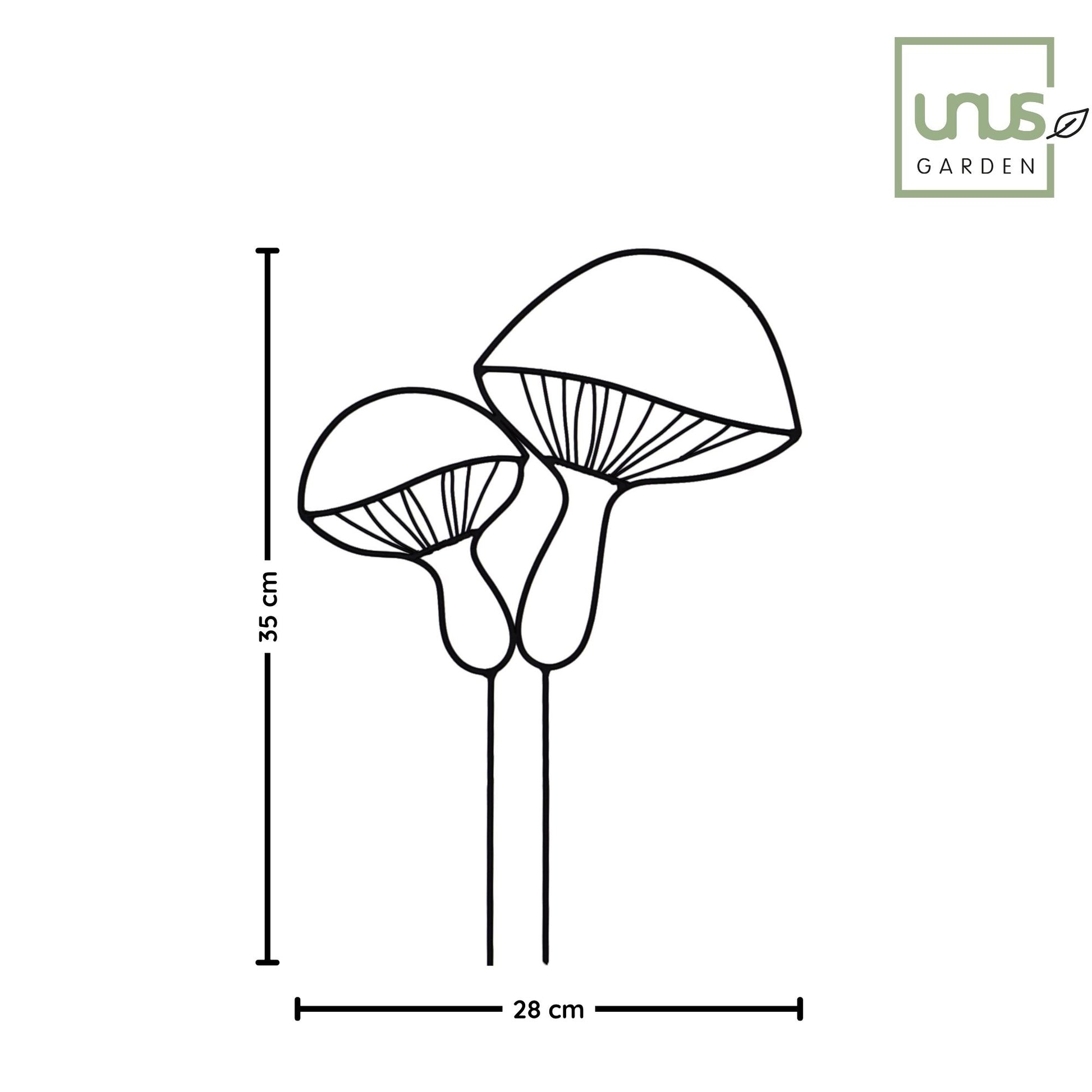 Verleihe deinem Zuhause eine stilvolle, natürliche Note mit unserem 2er Set Metallkunst Pilzstecker in elegantem Schwarz. Die beiden unterschiedlich großen Pilzformen aus filigranem Metall sind ein charmantes Highlight für deine Pflanzenwelt – drinnen wie draußen im geschützten Bereich.