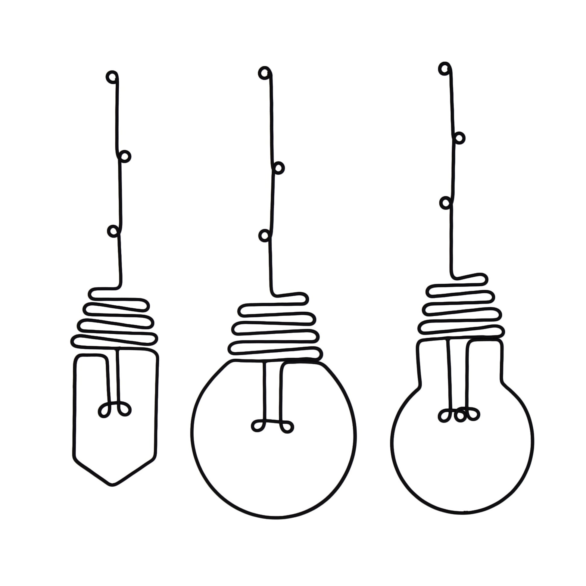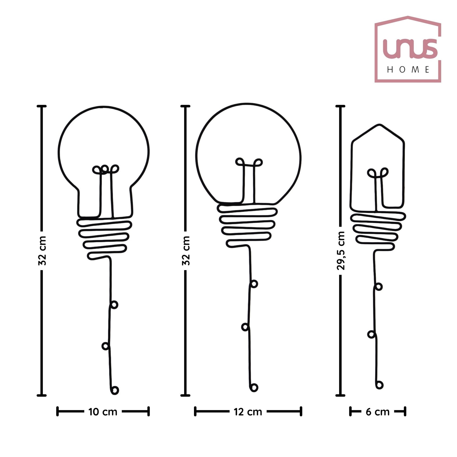 Kreativität trifft Design – mit dem UNUS® Wanddeko 3er Set in Glühbirnenform aus schwarzem Metalldraht setzen Sie stilvolle Akzente in jedem Raum.