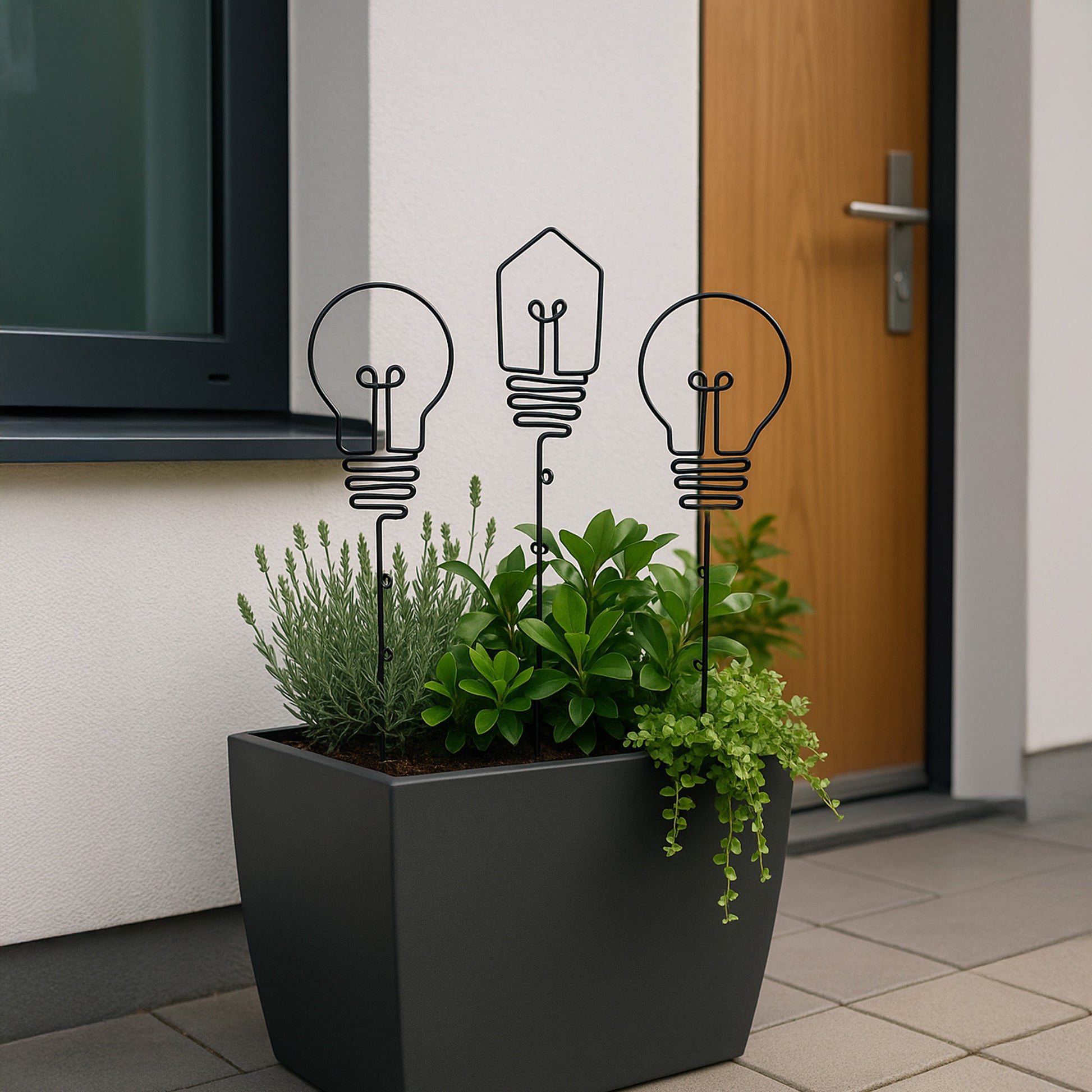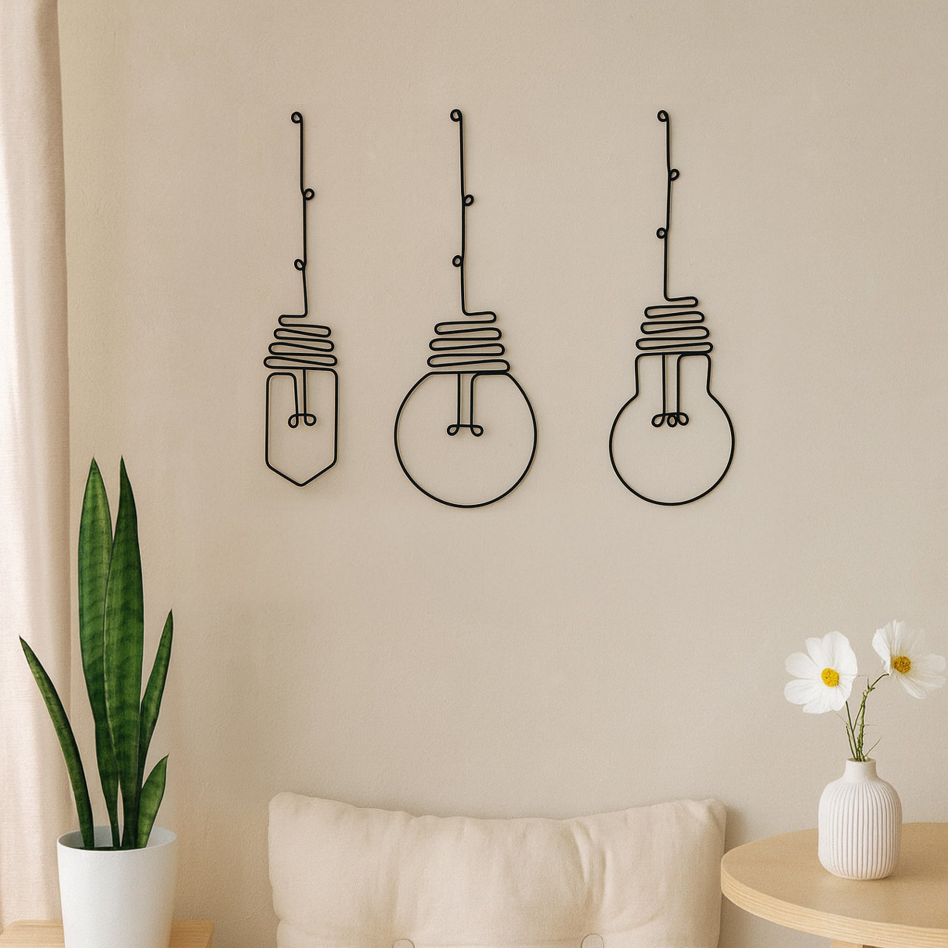 Dieses dreiteilige Set zeigt drei unterschiedliche Glühbirnenformen – minimalistisch, modern und mit feinem Gespür für Form und Stil gestaltet. Ob einzeln oder als Ensemble aufgehängt, die Drahtfiguren wirken leicht, originell und sorgen sofort für ein inspirierendes Ambiente.