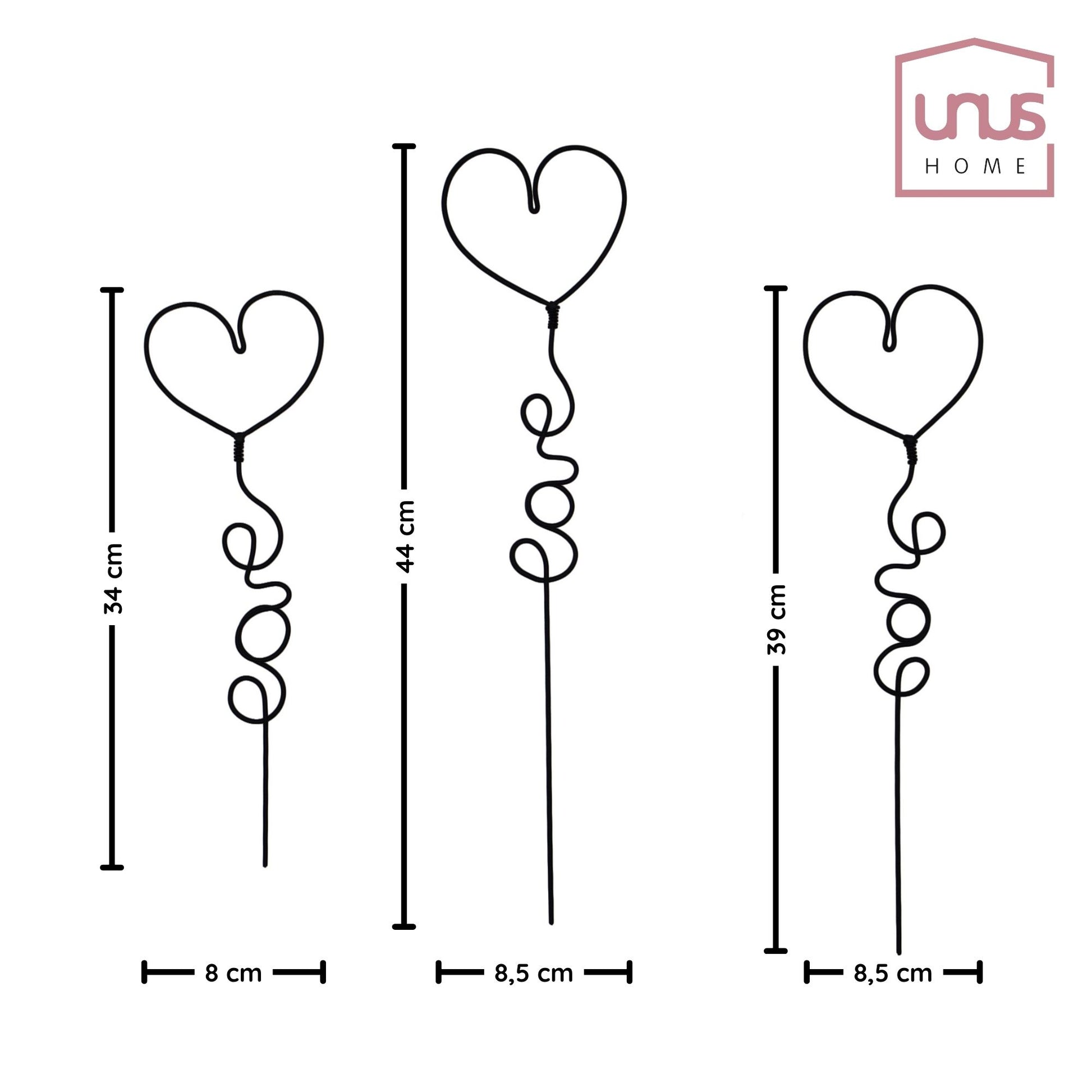 Mit dem UNUS® Mini-Gartenstecker-Set Herzen setzen Sie liebevolle Akzente – dezent, stilvoll und vielseitig. Die kleinen Herzen aus schwarzem Metall fügen sich perfekt in Blumentöpfe, kleine Vasen, Gestecke oder Arrangements auf der Fensterbank ein.