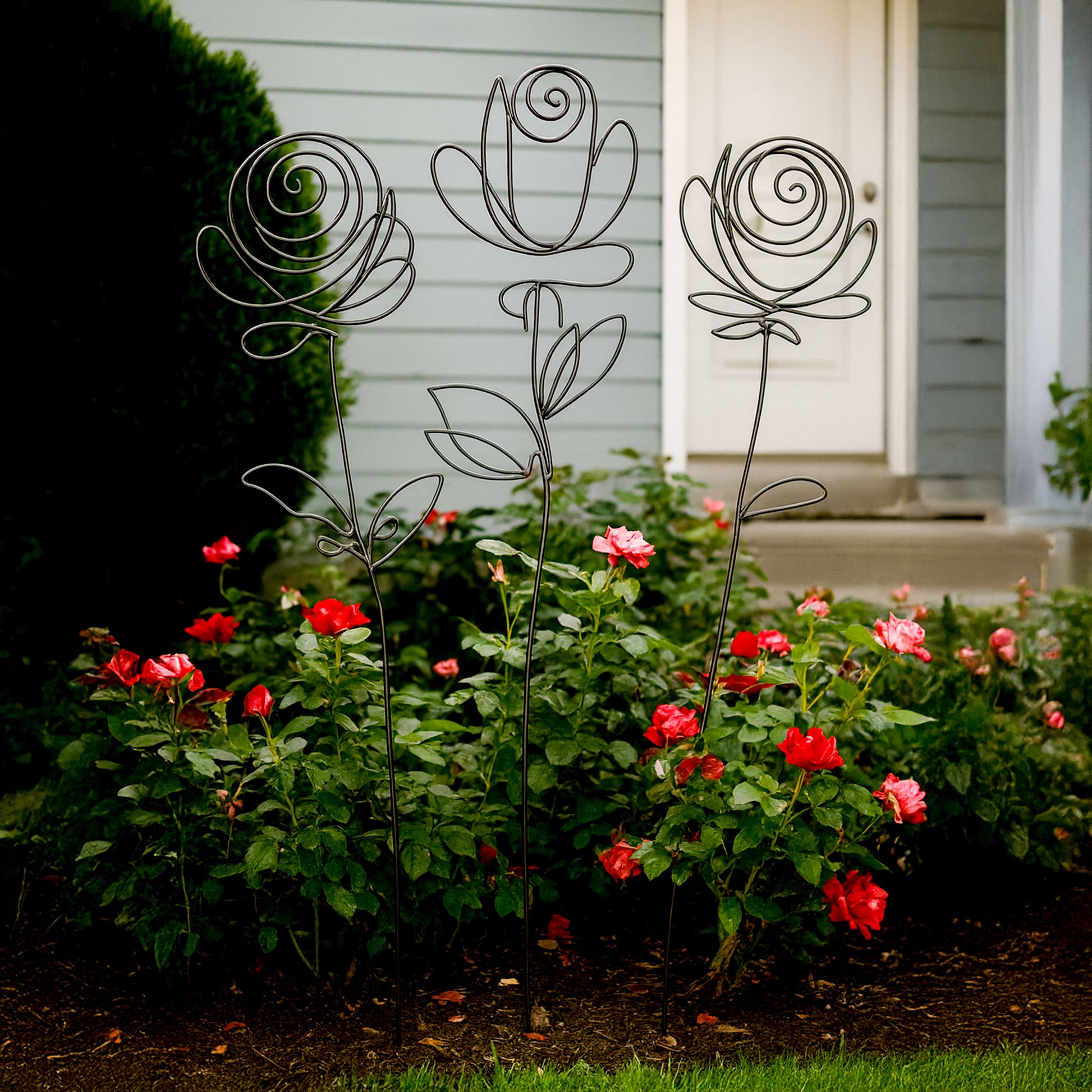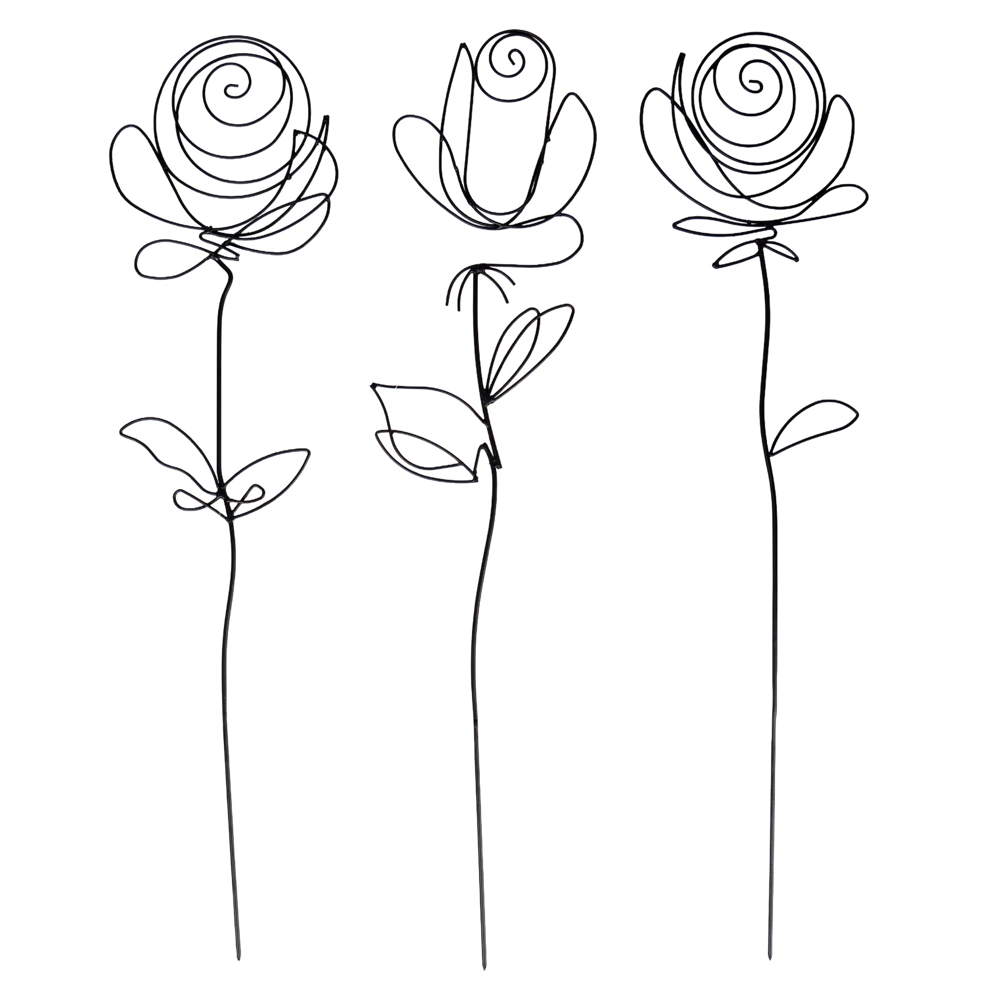 Metallkunst Stecker Rosen 3er Set in schwarz