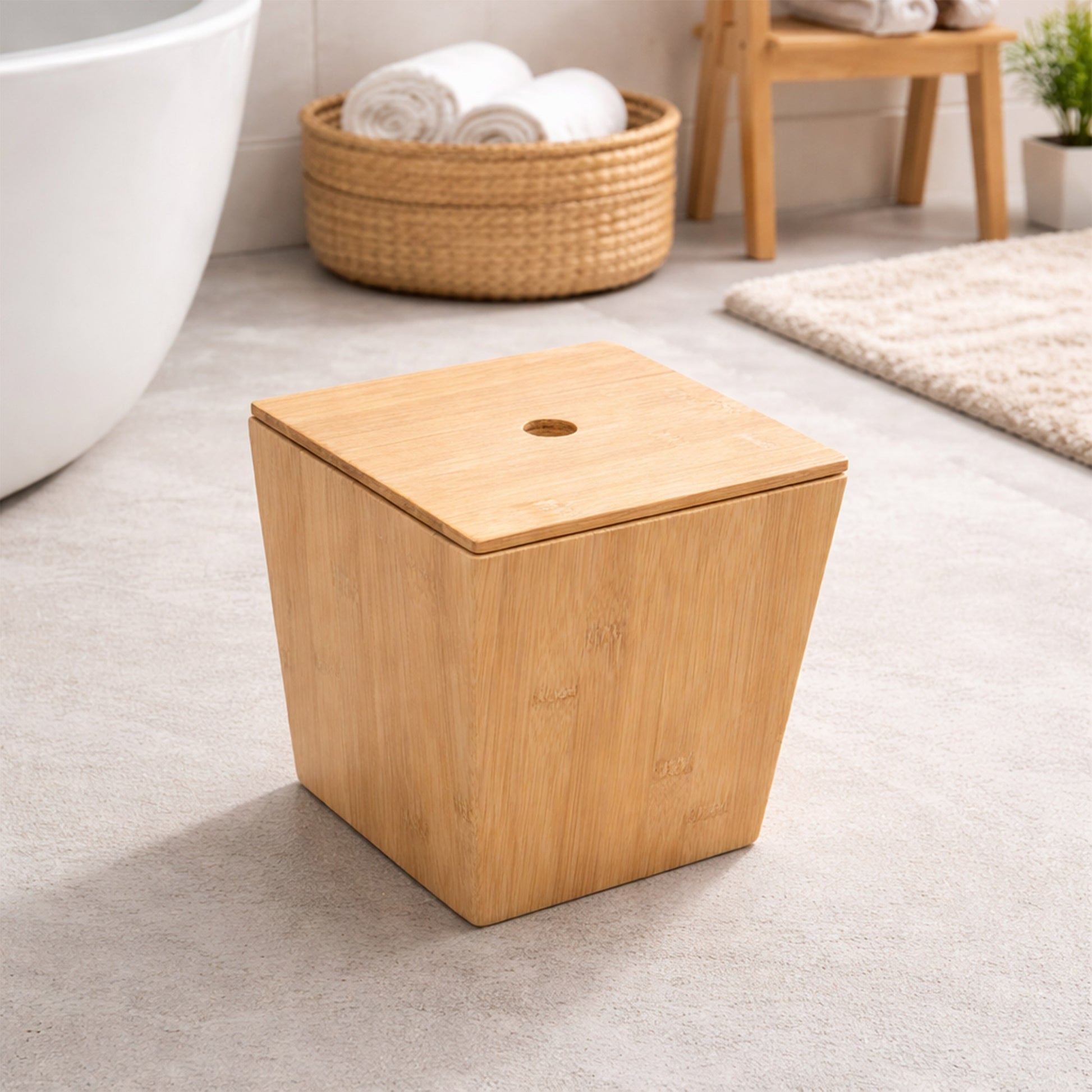 Dank der abgestuften Größen können die Bambus-Mülleimer flexibel eingesetzt werden. Sie eignen sich ideal zum Sammeln von Papier, Kosmetikabfällen, kleinen Haushaltsresten oder als dekorative Aufbewahrung. Die glatte Oberfläche erleichtert die Reinigung und sorgt für eine dauerhaft schöne Optik.
