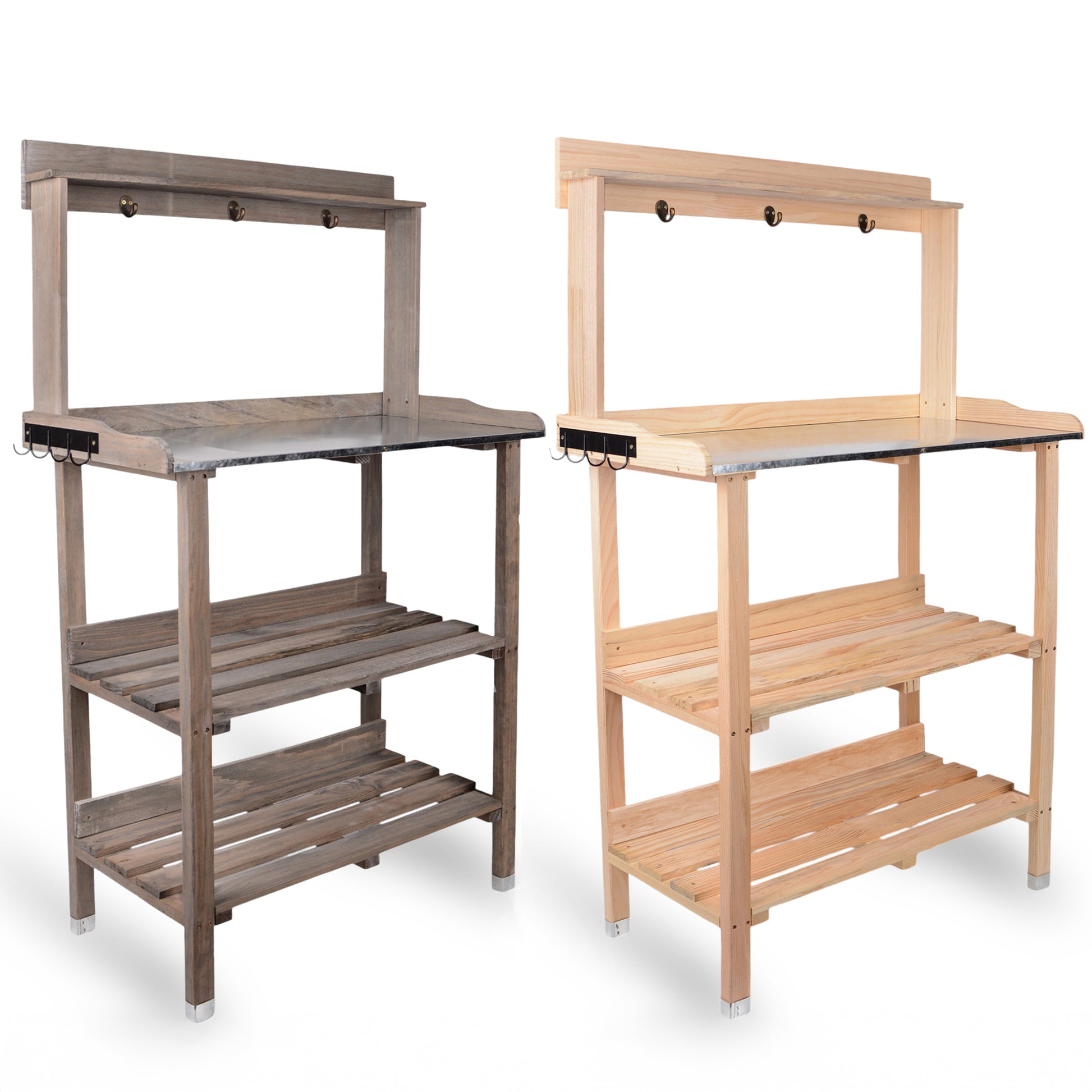 Pflanztisch grau oder natur mit 2 Böden und verzinkter Arbeitsfläche 78x36x131 cm