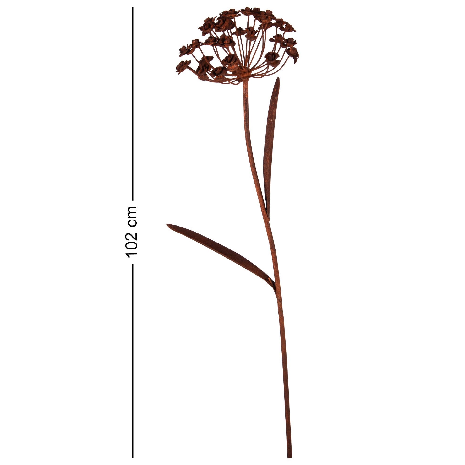Der Gartenstecker ist eine dezente aber wirkungsvolle Deko in Ihrem Blumenbeet. Er besteht aus einem robusten und hochwertigen Material mit einer einzigartigen Rostoptik. Der Roststecher kann bedenkenlos das ganze Jahr über draußen stehen gelassen werden, da er witterungsfest und auch frostfest ist. Die Handhabung des Steckers ist kinderleicht, einfach die Streben in die Erde drücken und schon steht der Roststecker.