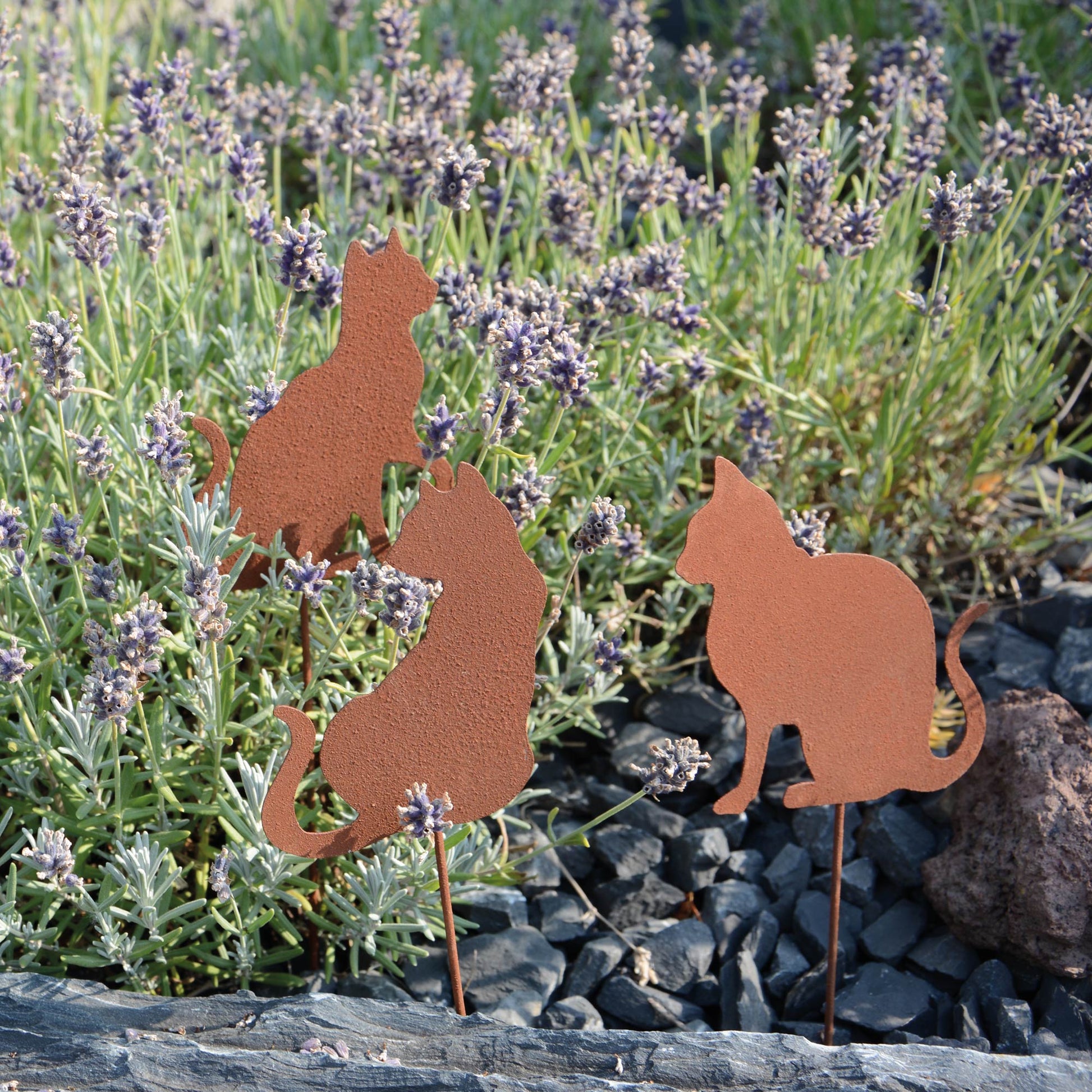 UNUS Garden Katzen Gartenstecker 3er Set, Gartendeko Rostoptik, Roststecker aus Edelrost Metall, Rost Deko für Garten Terrasse Balkon