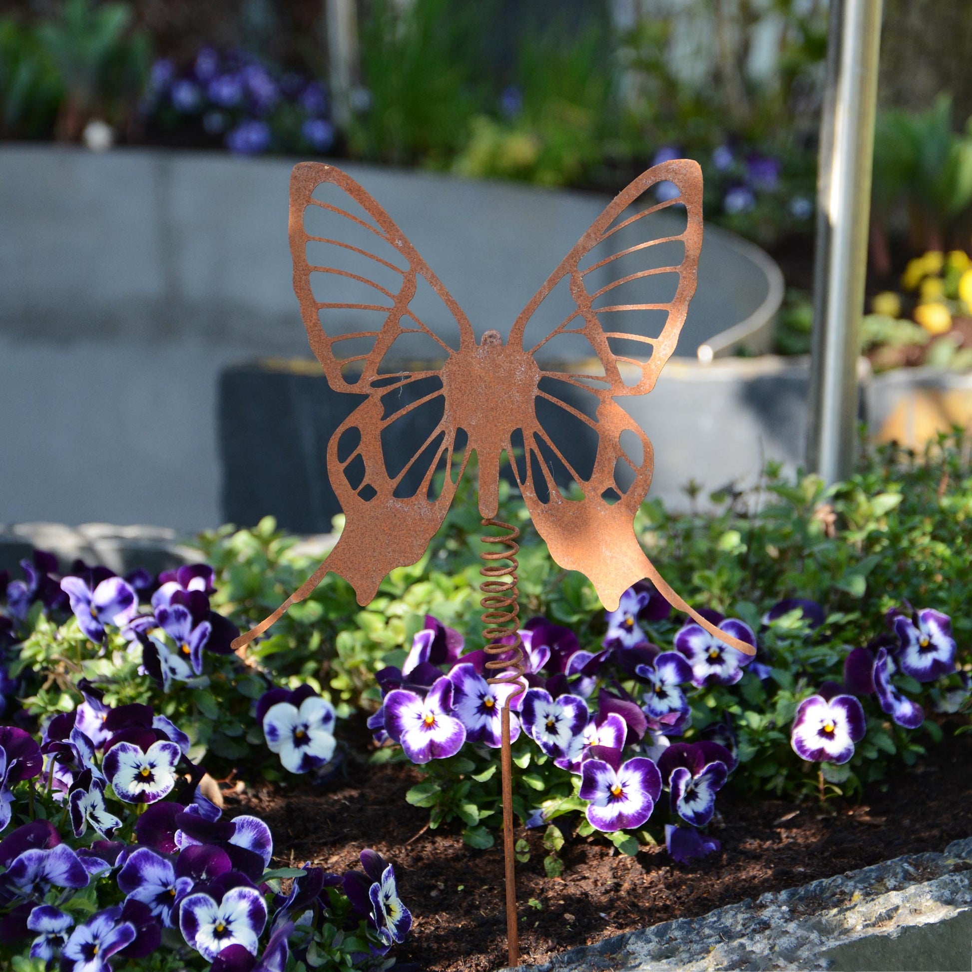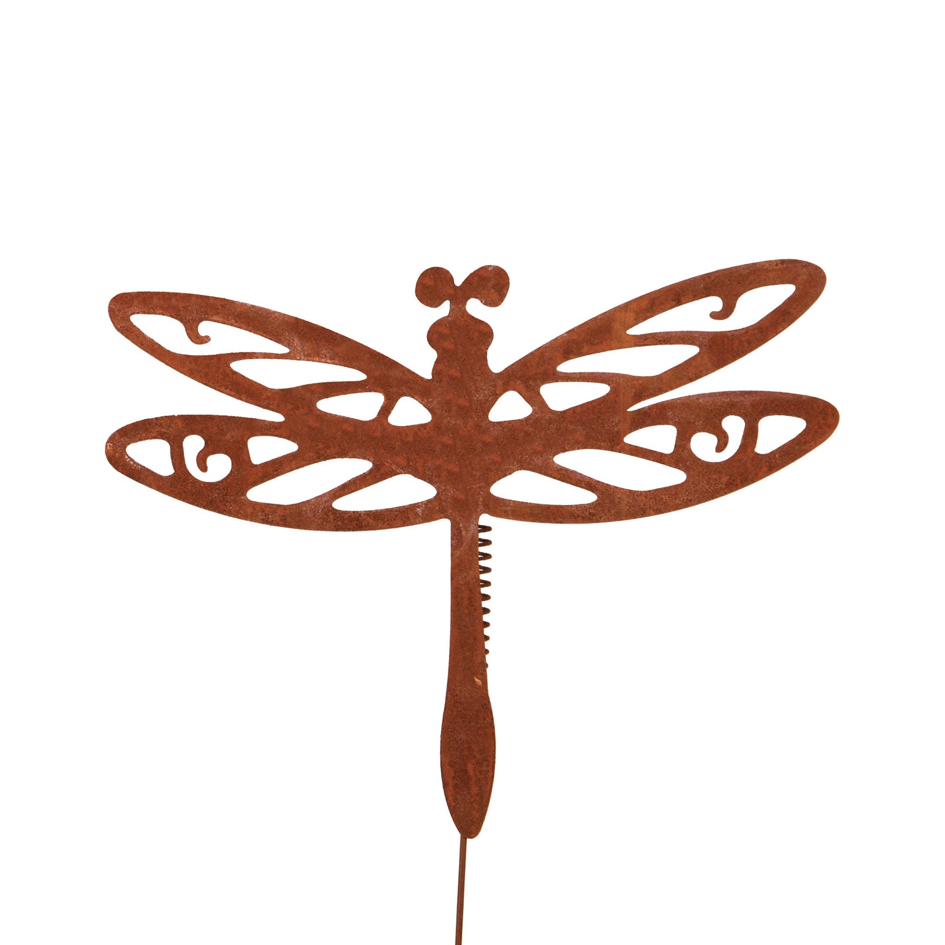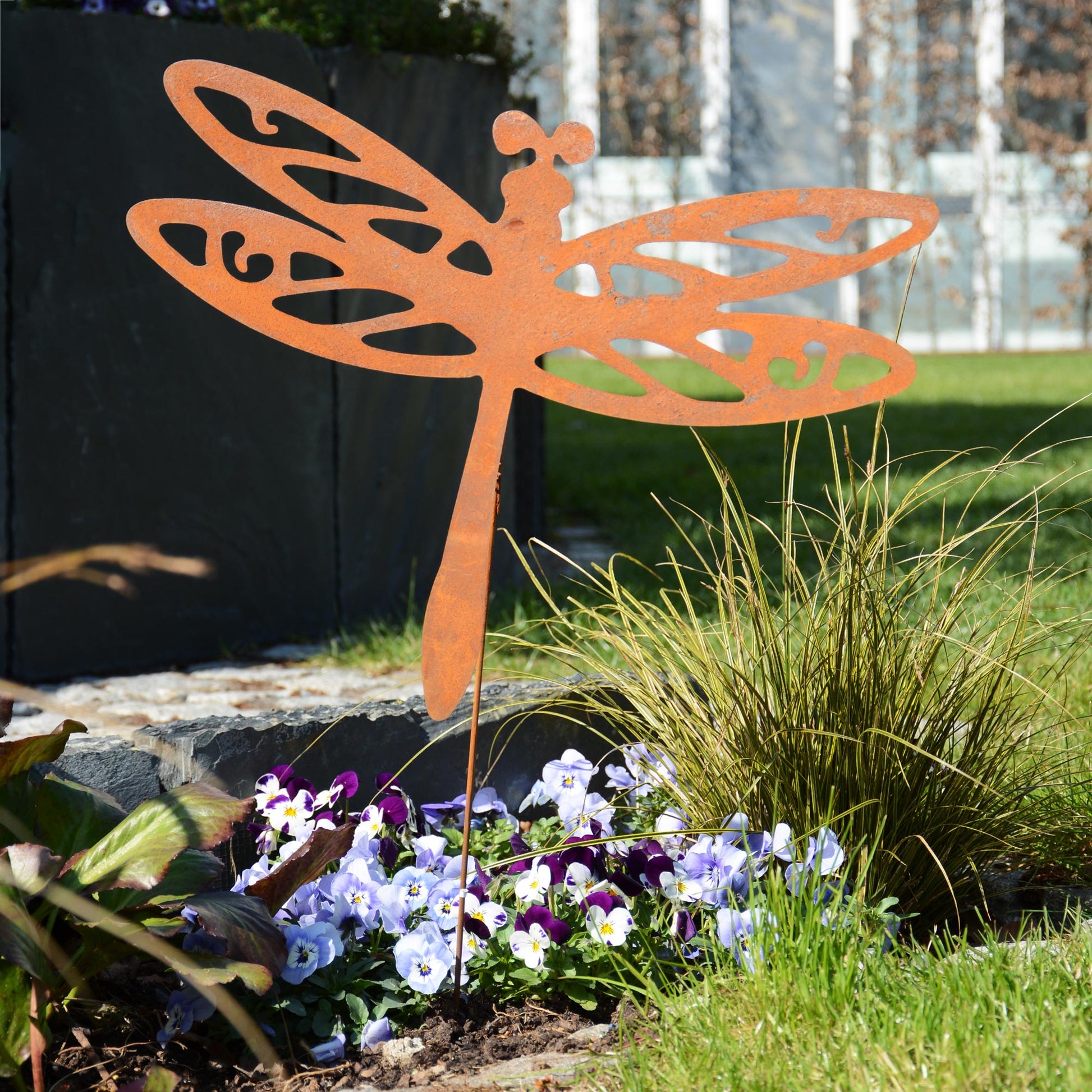 Der Schmetterling und die Libelle wurden aus robustem Metall in Rostoptik gefertigt und können sowohl drinnen als auch draußen dekoriert werden.