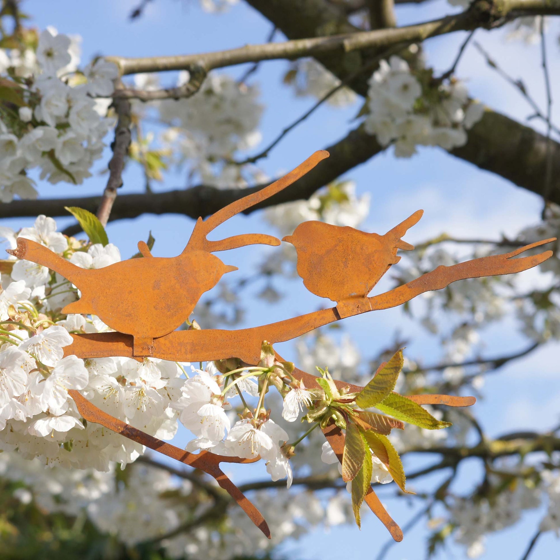Machen Sie Ihren Garten oder Ihr Zuhause mit unserer dekorativen Gartendeko aus Edelrost noch schöner. Die wunderschönen Vögel lassen sich in fast jede Umgebung integrieren. Es ist vor allem als hübsche Dekoration für Ihren Garten geeignet, macht sich aber auch gut auf der Terrasse, dem Balkon oder in Ihrem Zuhause. Die kunstvoll gezeichneten, feinen Formen bringen das gewisse Etwas mit. Die Vögel auf dem Ast einfach an Wand, Fenster, Tür oder Baum hängen oder in ein Blumenbeet stecken und schon ist Ihr Garten oder Ihr Zuhause dekoriert.