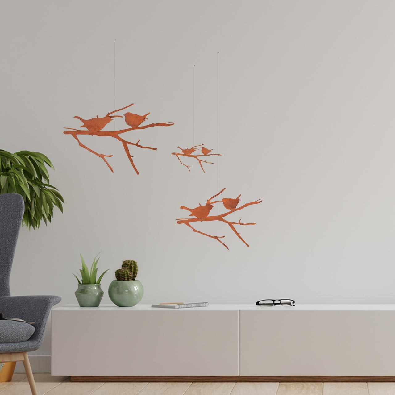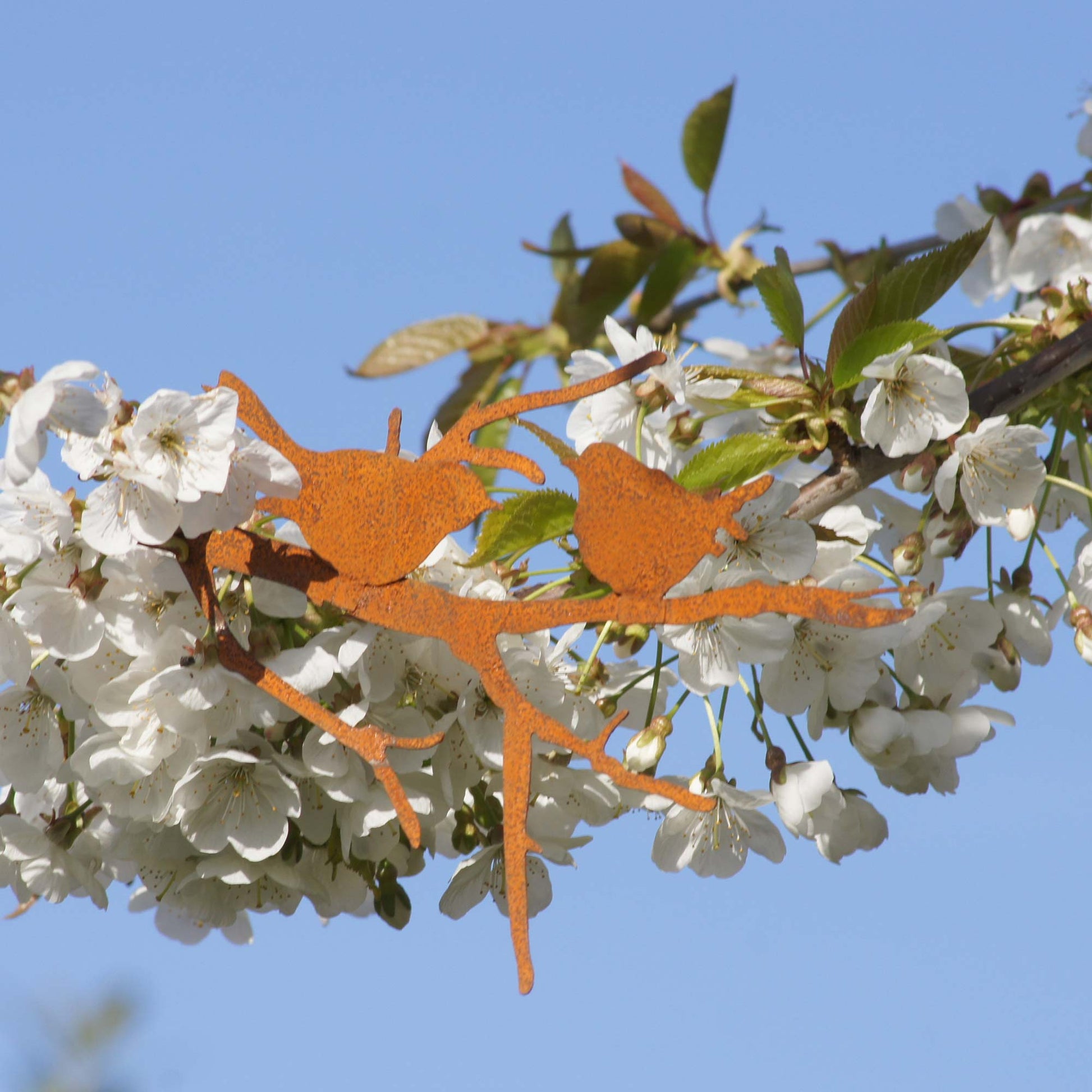 Roststecker Vögel auf Ast rostig 3er Set