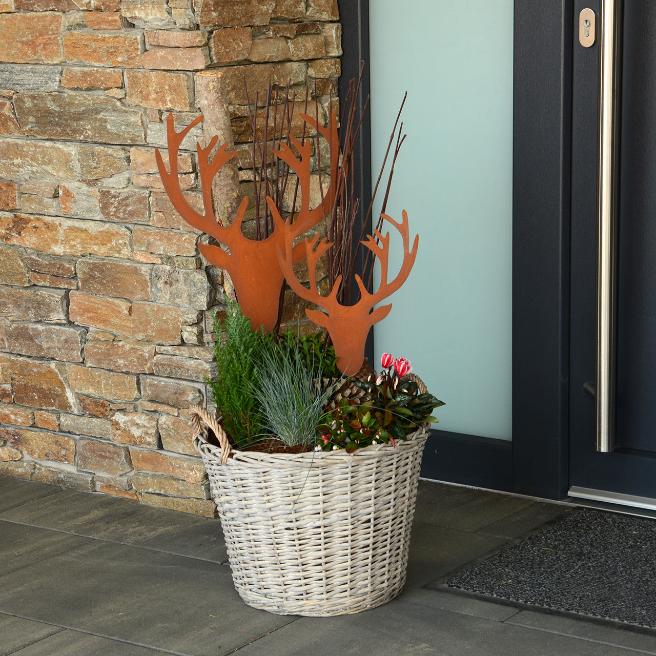Dekorieren Sie nach Ihren Belieben und Wünschen die Hirschkopf. Töpfe, Blumen und Garten wirken direkt weihnachtlich und bringen die Weihnachtsstimmung zum Vorschein.