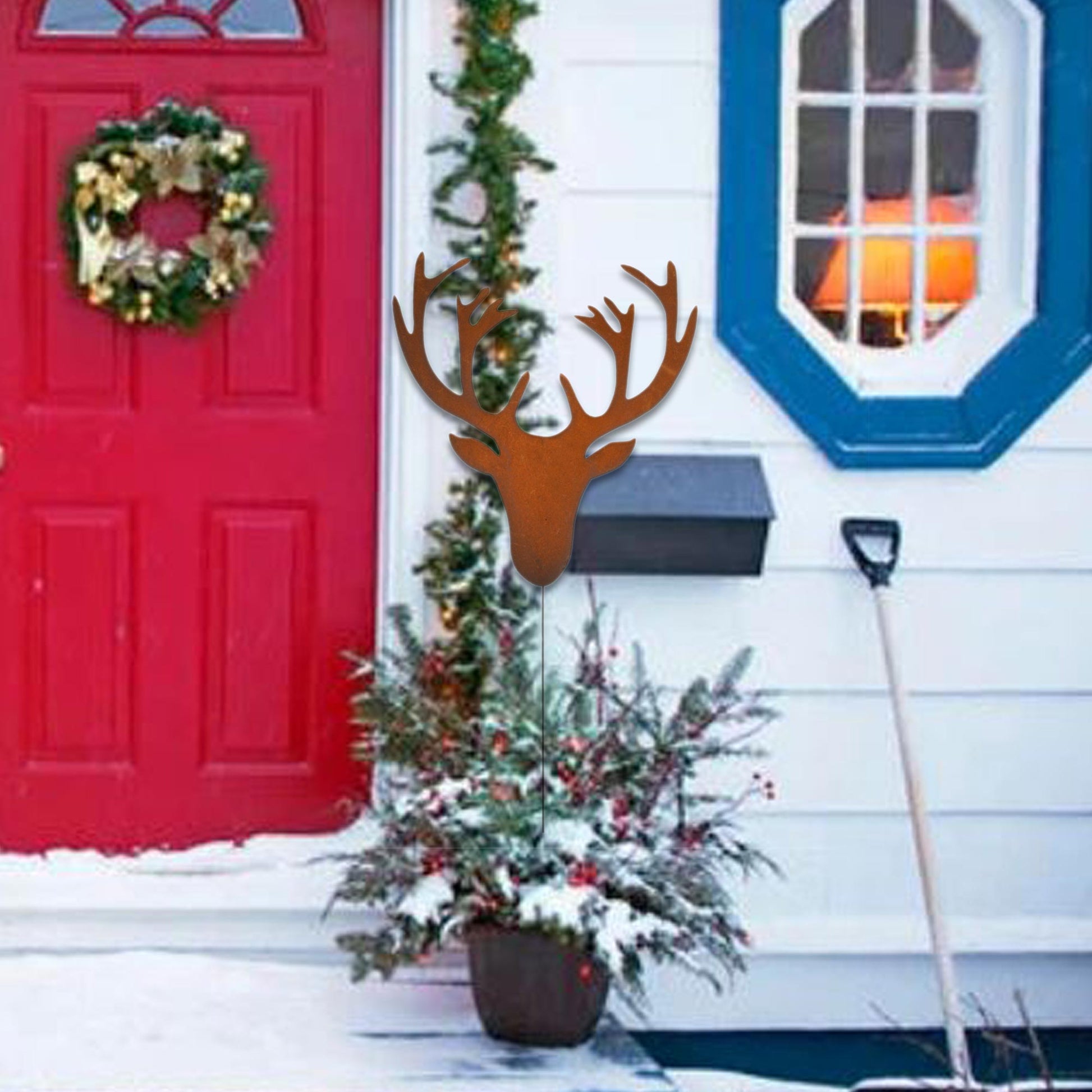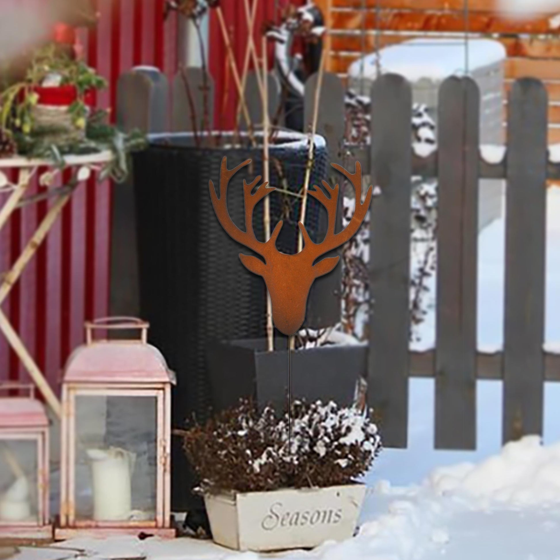 Schöne Weihnachtsdeko Hirschkopf aus Metall für Ihren Garten, Balkon oder Terrasse