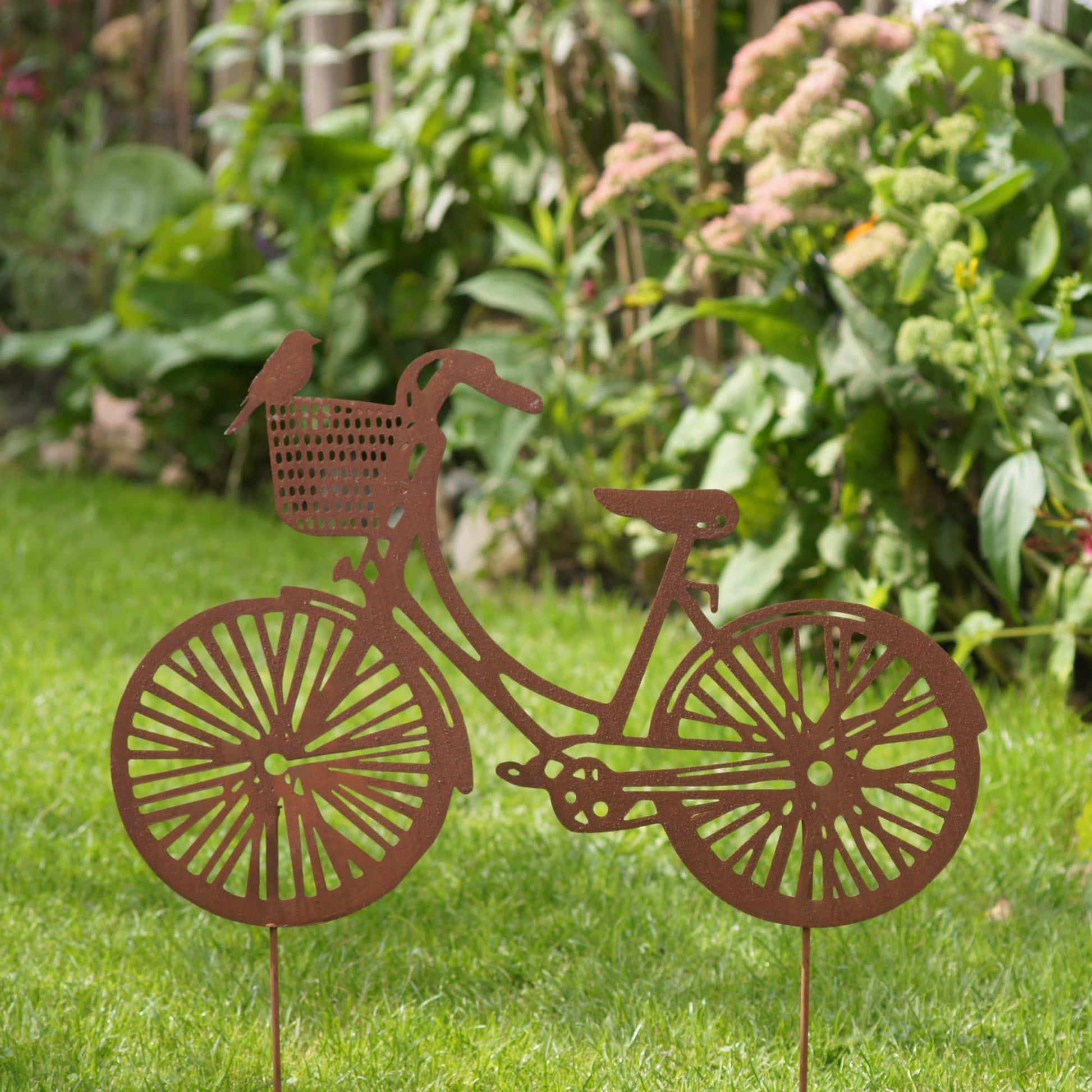 Der Sommer steht vor der Tür und die warmen Tage im Garten können kommen! Machen Sie Ihren Garten mit unserem Gartenstecker aus Edelrost noch schöner. Das wunderschöne Fahrrad lässt sich in fast jeder Umgebung integrieren. Die kunstvoll gezeichneten, feinen Formen bringen das gewisse Etwas in Ihren Garten. Die Handhabung des Steckers ist kinderleicht. Einfach die Stäbe in die Erde drücken und schon ist Ihr Garten dekoriert.