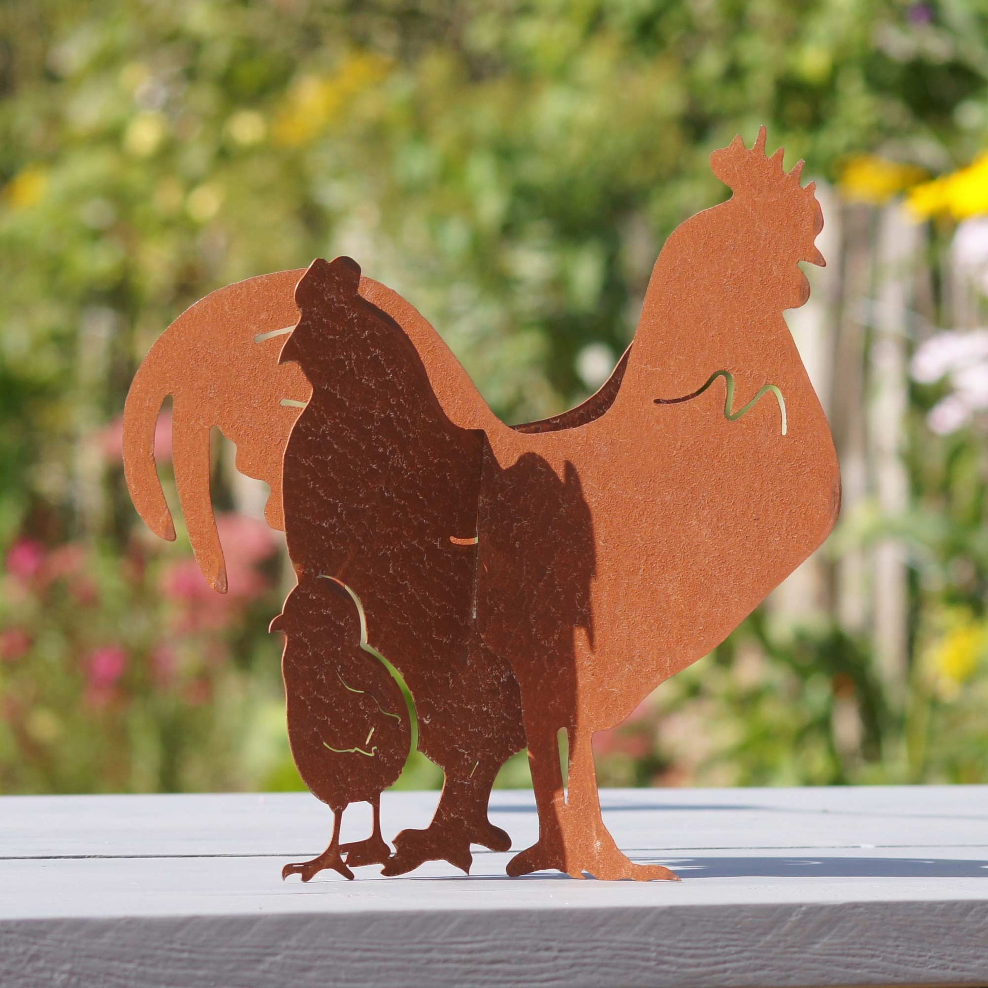Der Sommer steht vor der Tür und die warmen Tage im Garten können kommen! Machen Sie Ihr Zuhause mit unserem Gartenstecker aus Edelrost noch schöner. Die wunderschöne Hühnerfamilie lässt sich in fast jeder Umgebung integrieren. Die kunstvoll gezeichneten, feinen Formen bringen das gewisse Etwas in Ihren Garten. Die Handhabung der Figur ist kinderleicht. Einfach die Steckelemente zusammenstecken und platzieren. Schon ist Ihr Garten oder Zuhause dekoriert.