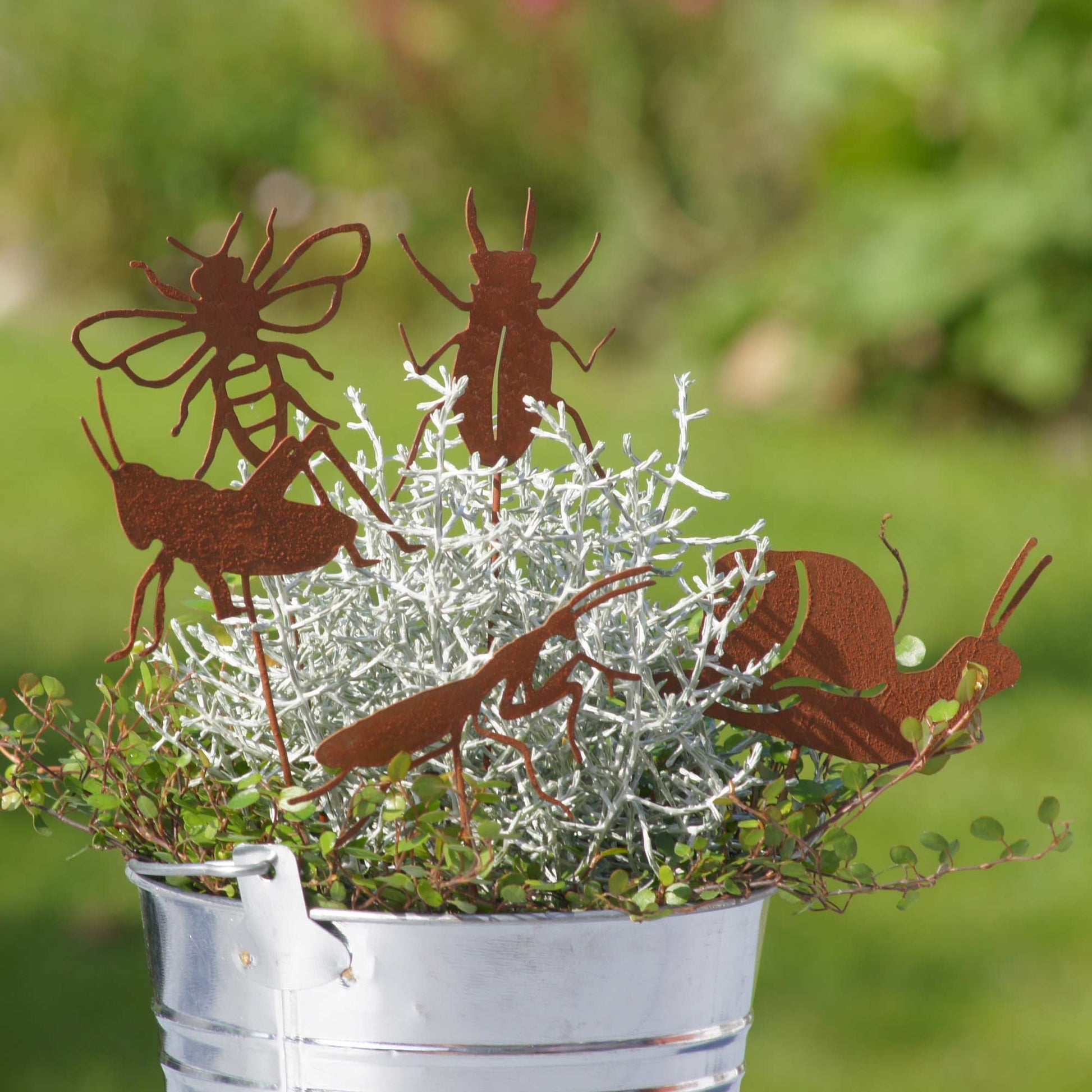 UNUS Garden Insekten Gartenstecker 5er Set, Gartendeko Rostoptik, Roststecker aus Edelrost Metall, Rost Deko für Garten Terrasse Balkon Blumentopf