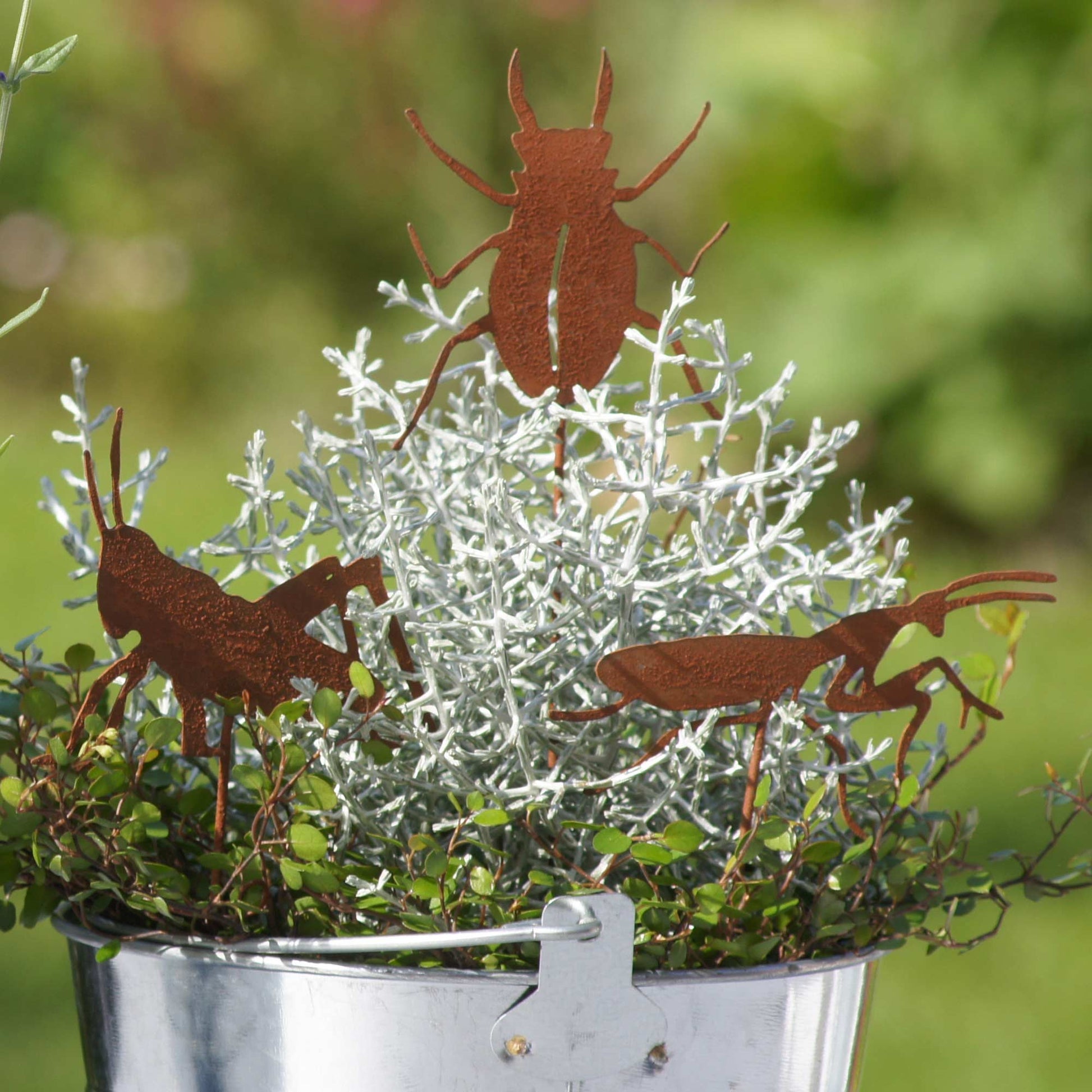 Die Insekten bestehen aus robustem und hochwertigen Metall mit einer einzigartigen Rostoptik. Die Roststecker sind witterungsfest und frostfest. Sie können sie das ganze Jahr über draußen stehen lassen. Die Gartenstecker eignen sich auch hervorragend als außergewöhnliches und kreatives Geschenk für Gartenfreunde und Dekofans! Die Pflanzenstecker werden mit fixierten Stäben geliefert und lassen sich ganz bequem und unkompliziert aufstellen. Die Insekten werden zum Hingucker in Ihrem Garten und ziehen die Blicke Ihrer Nachbarn auf sich.