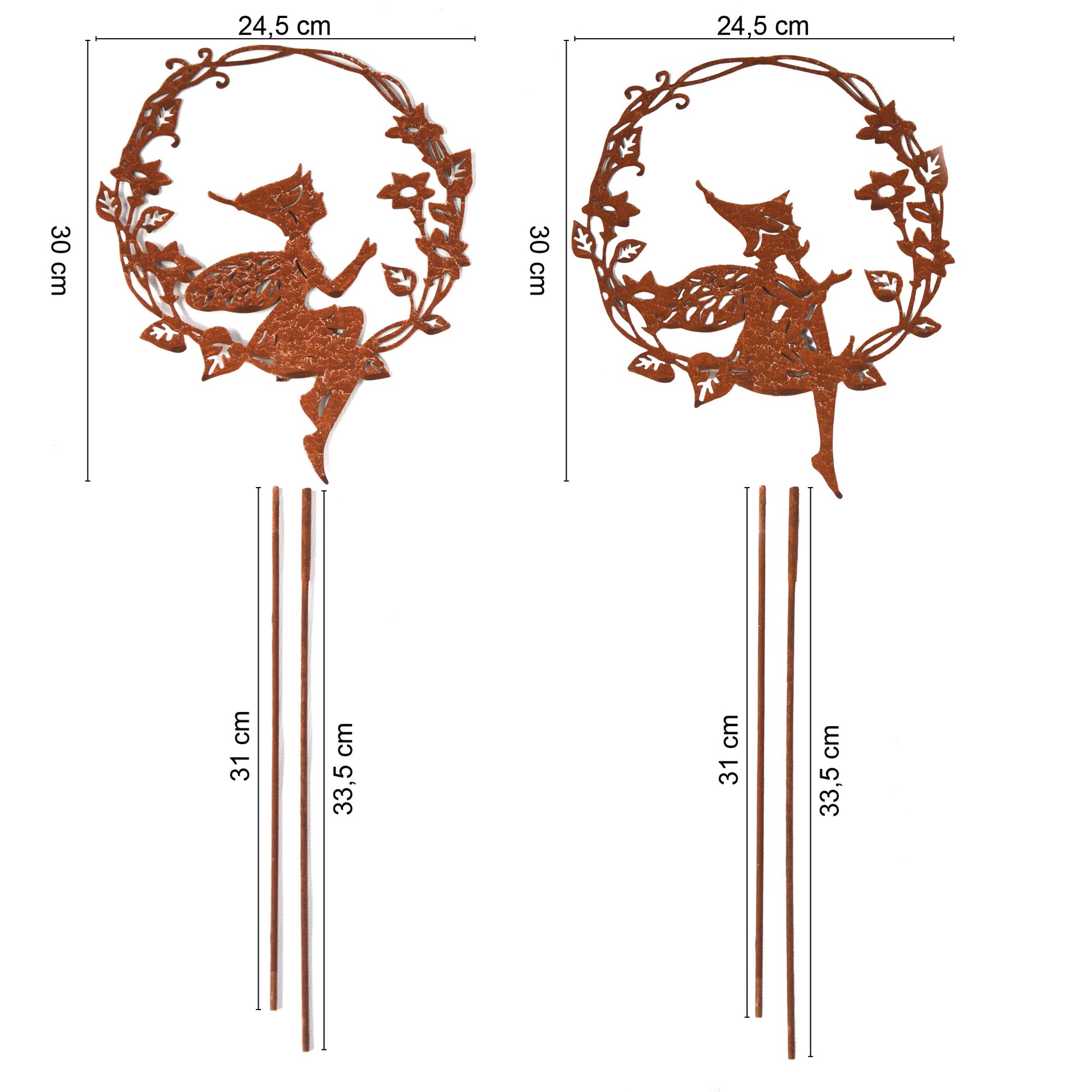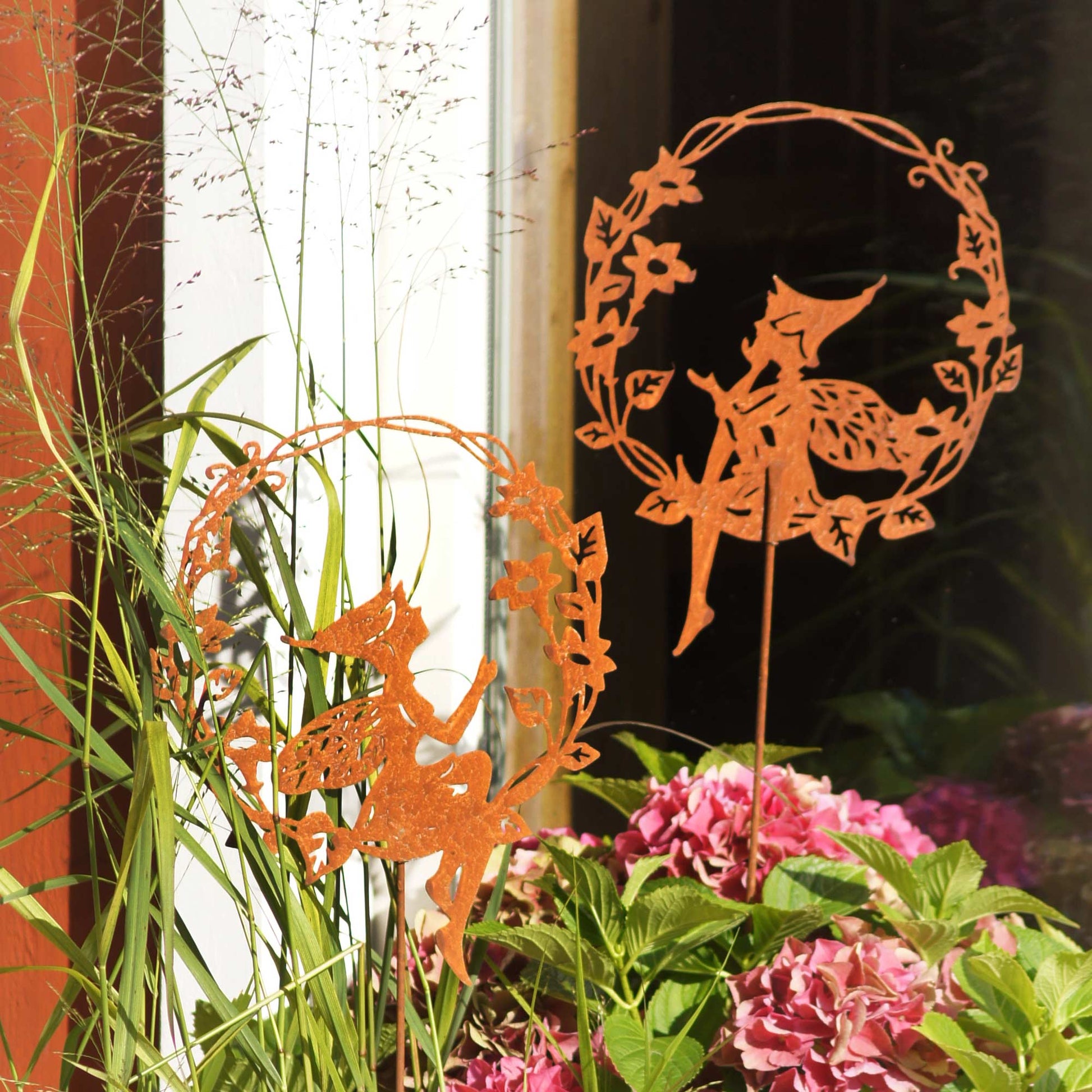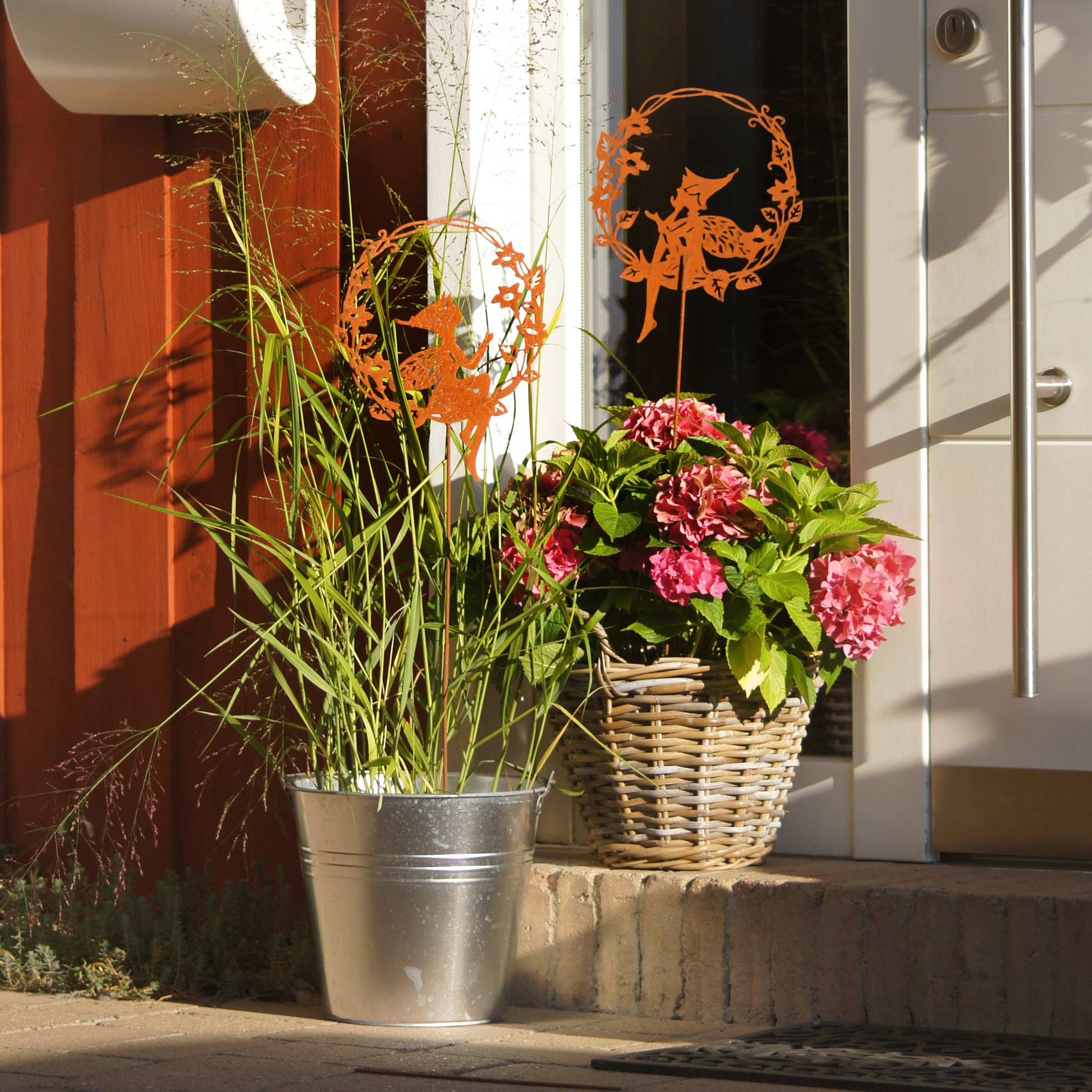 UNUS GARDEN Roststecker Elfe Blumenkranz, Gartendeko Rostoptik, Gartenstecker aus Edelrost, Rost Deko für Garten Terrasse Balkon Blumentopf, 2er Set