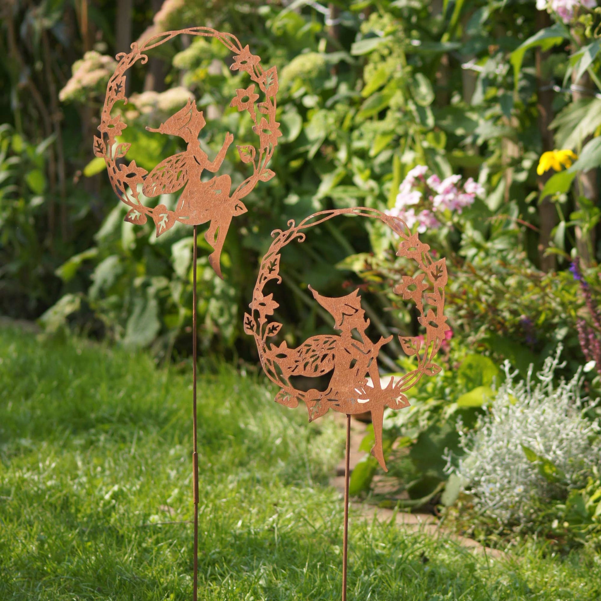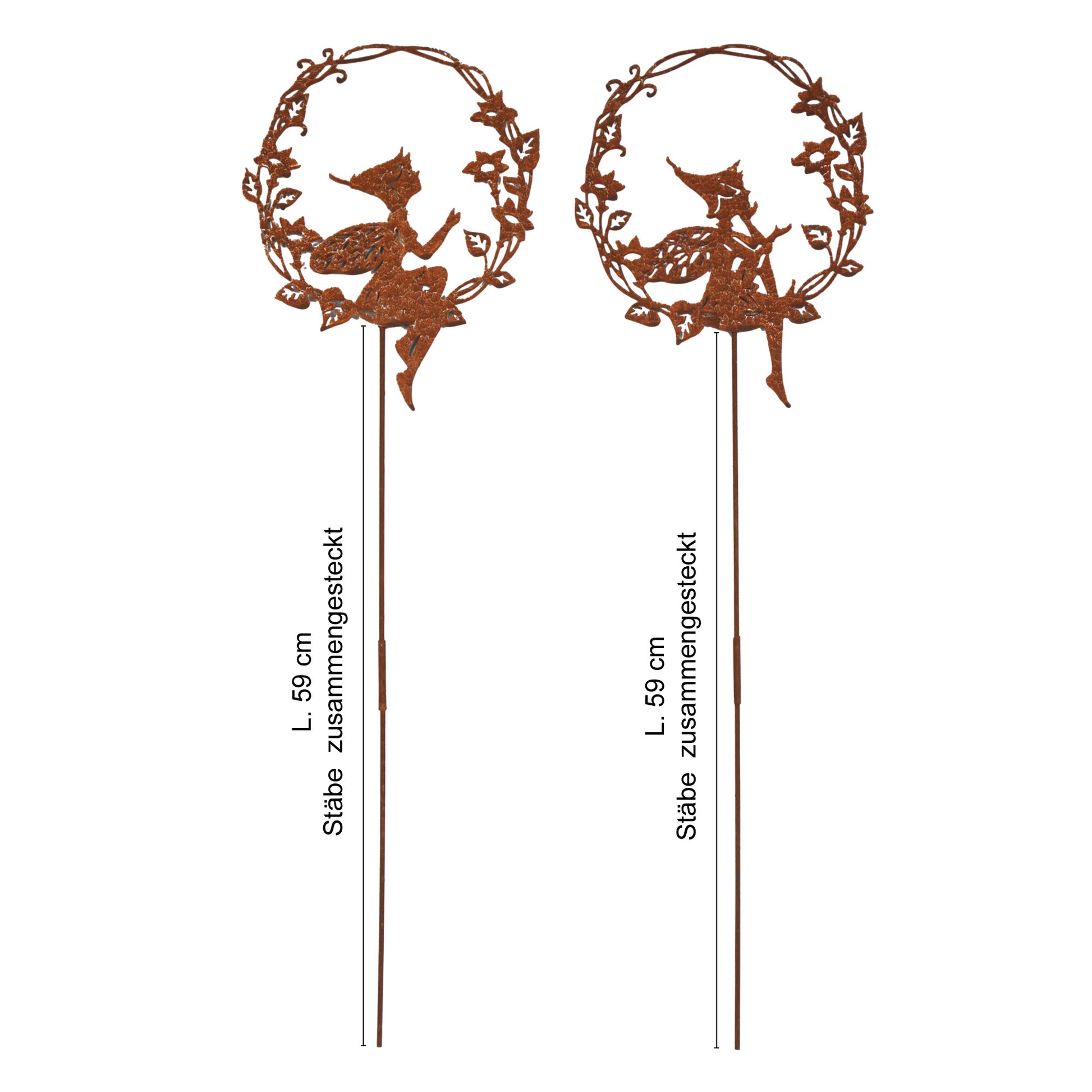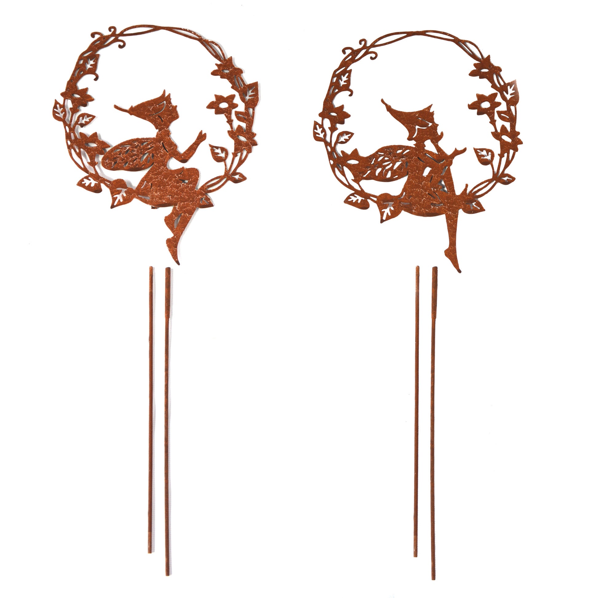 UNUS GARDEN Roststecker Elfe Blumenkranz, Gartendeko Rostoptik, Gartenstecker aus Edelrost, Rost Deko für Garten Terrasse Balkon Blumentopf, 2er Set