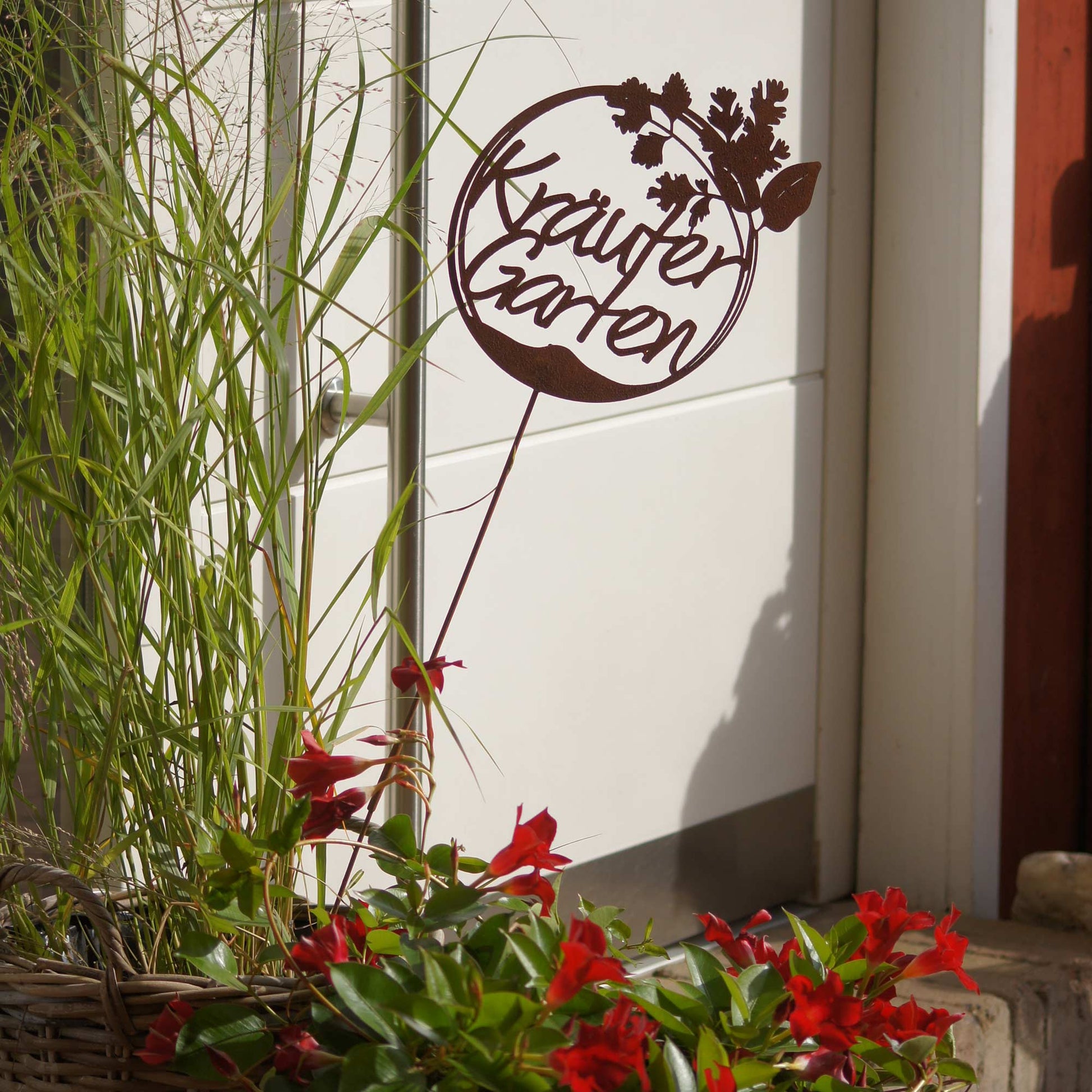 UNUS GARDEN Gartenschild Kräutergarten, Gartendeko Rostoptik, Gartenstecker aus Edelrost, Rost Deko für Garten