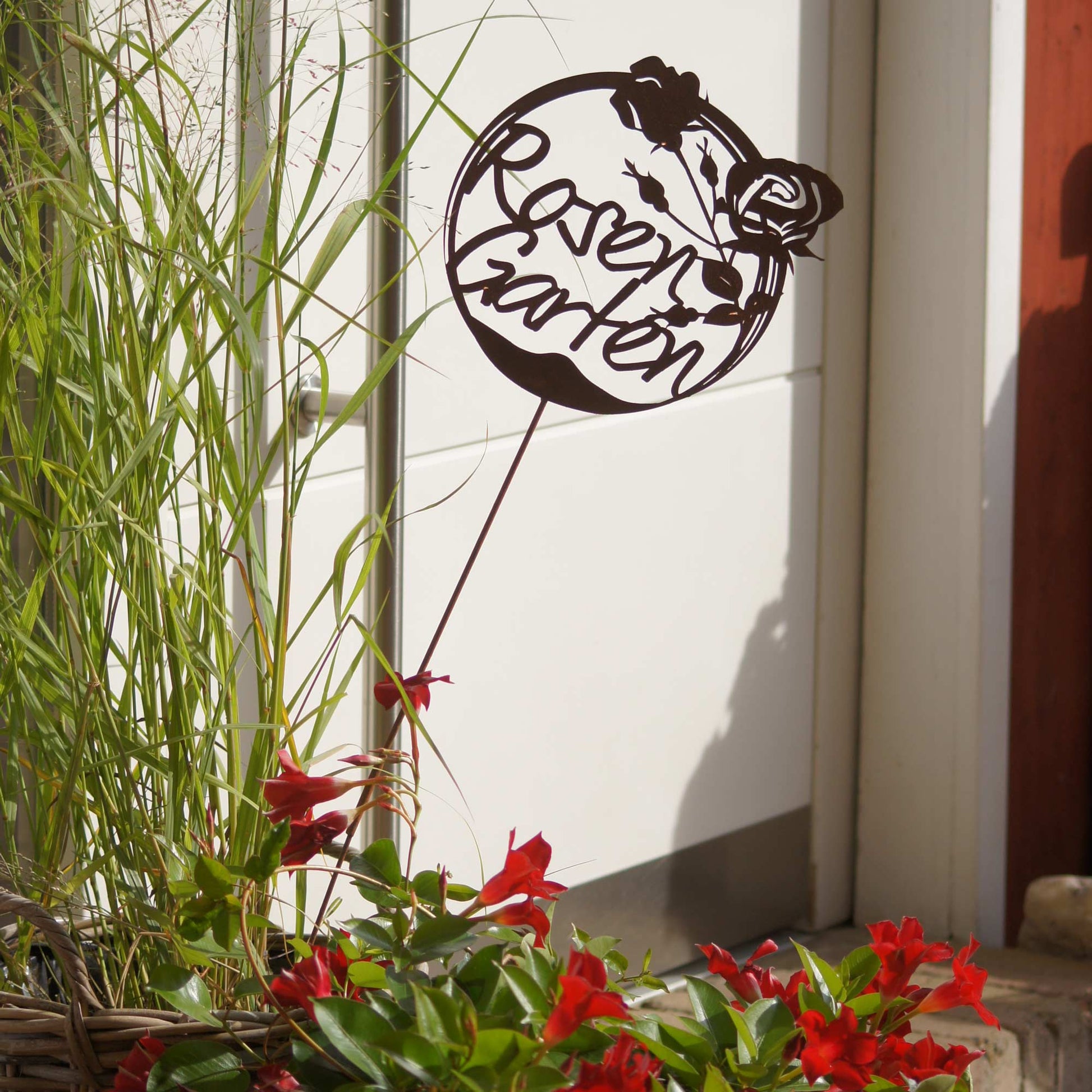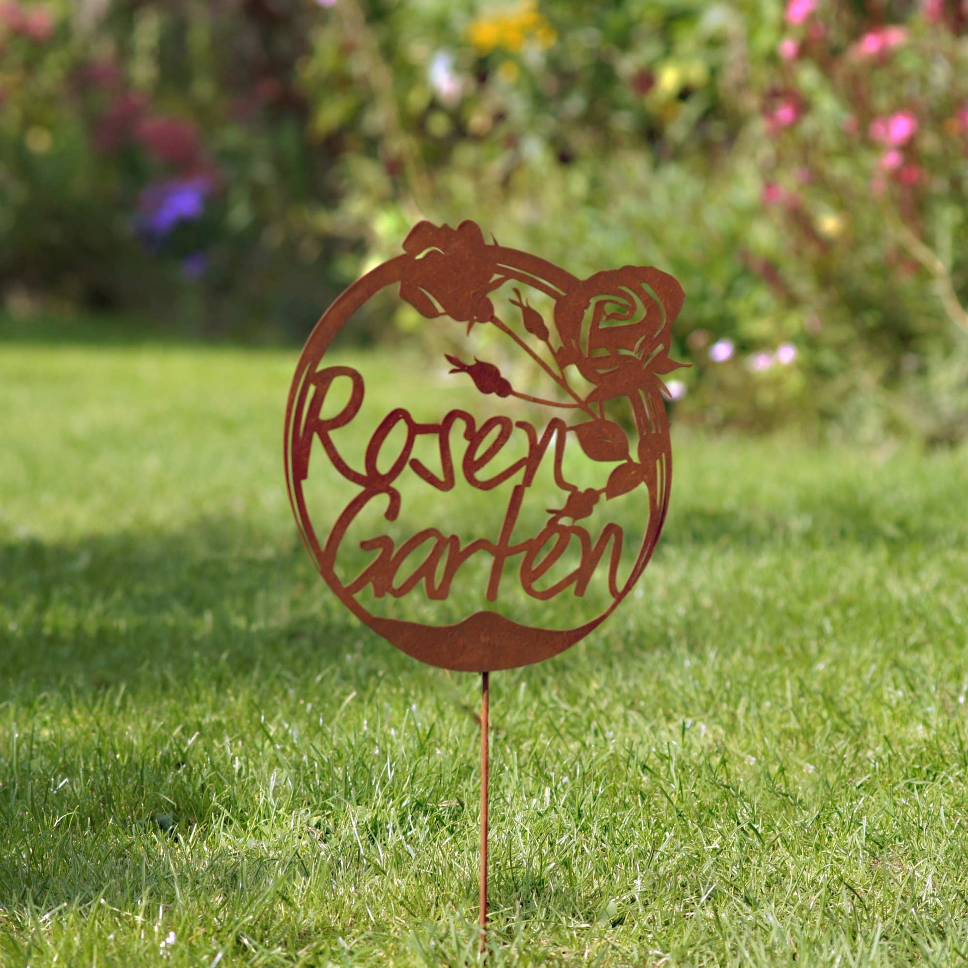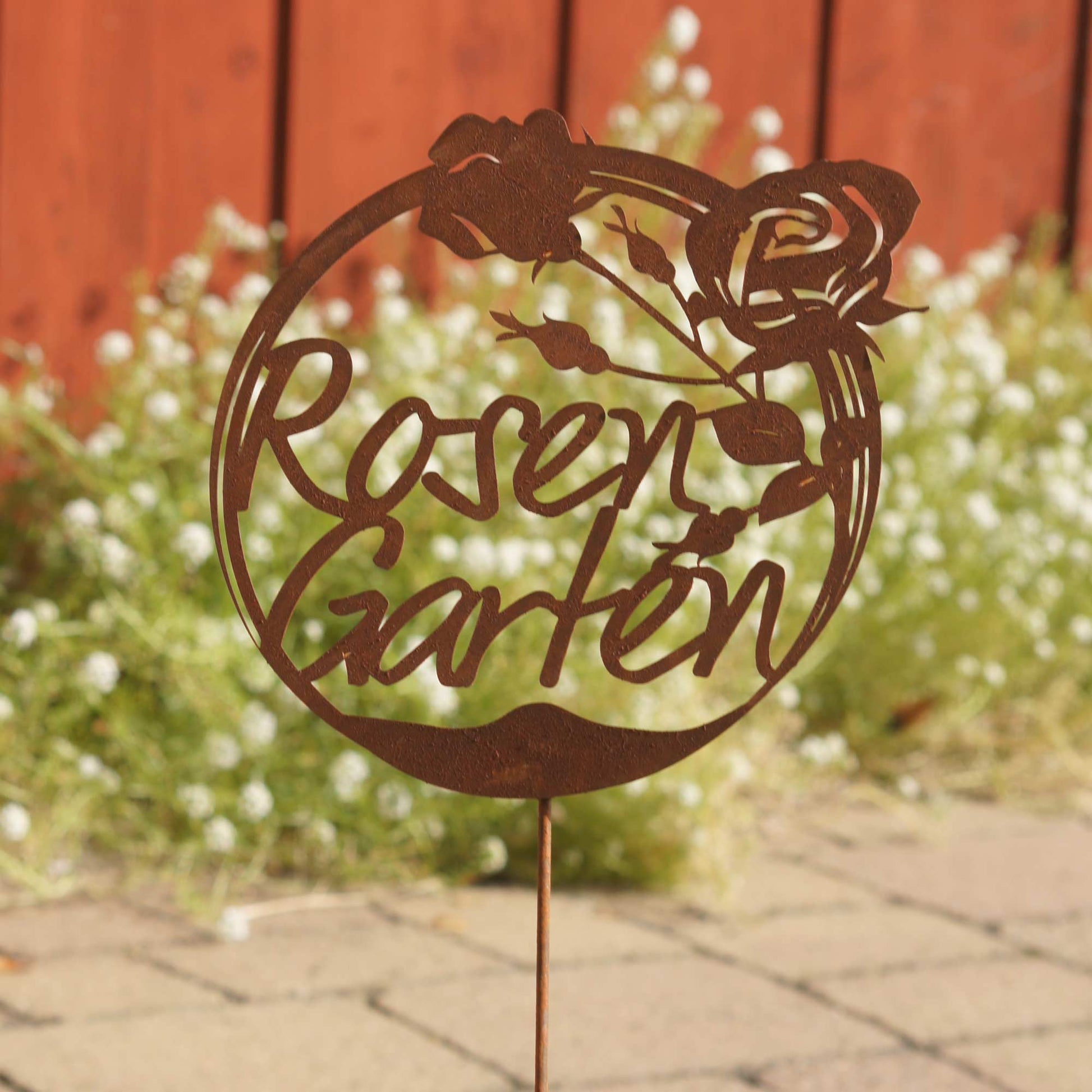 UNUS GARDEN Gartenschild Rosengarten, Gartendeko Rostoptik, Gartenstecker aus Edelrost, Rost Deko für Garten