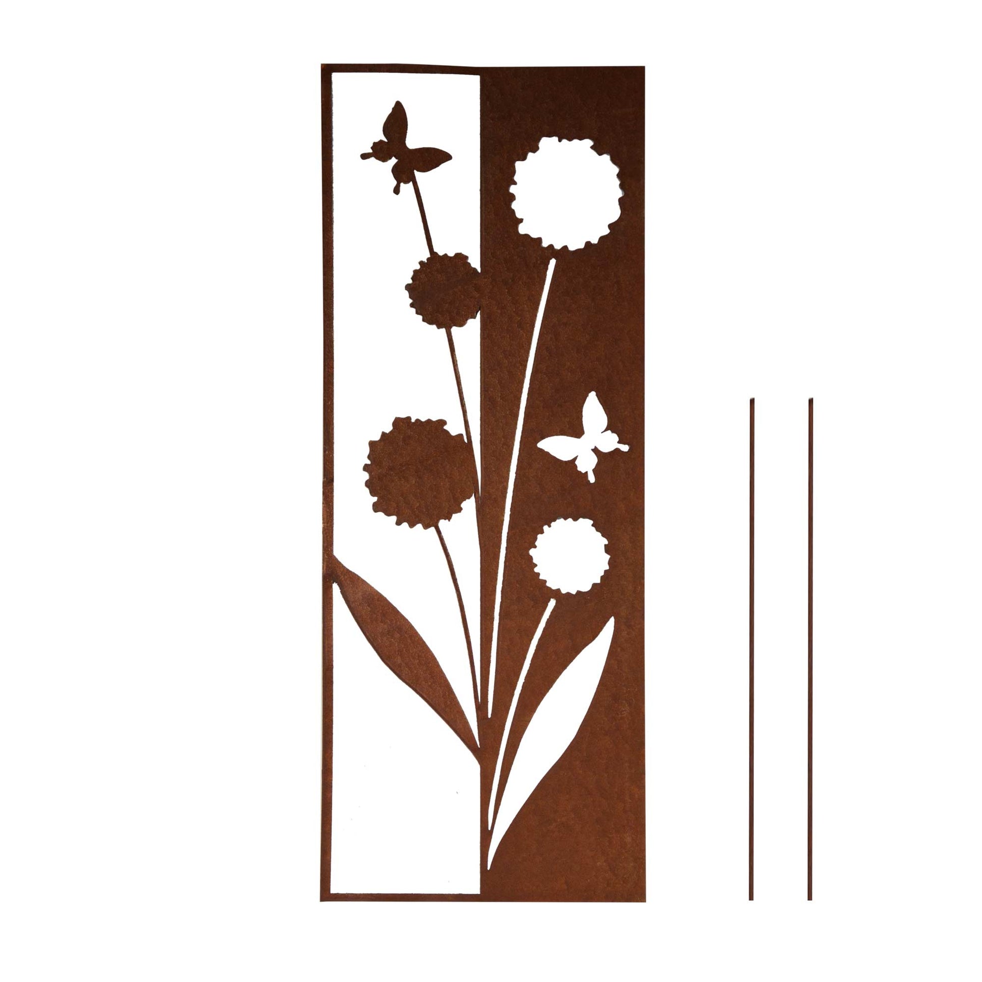 UNUS Garden Gartenschild mit Blumen, Design Gartendeko Rostoptik, Gartenstecker aus Edelrost, Rost Deko für Garten