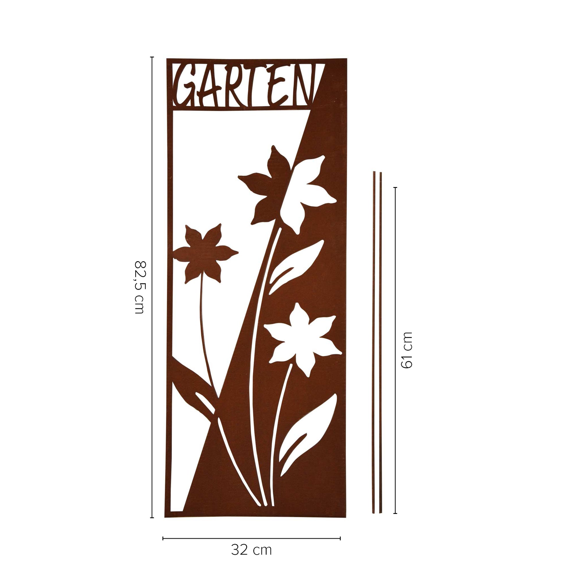 UNUS Garden Gartenschild mit Blumen, Design Gartendeko Rostoptik, Gartenstecker aus Edelrost, Rost Deko für Garten