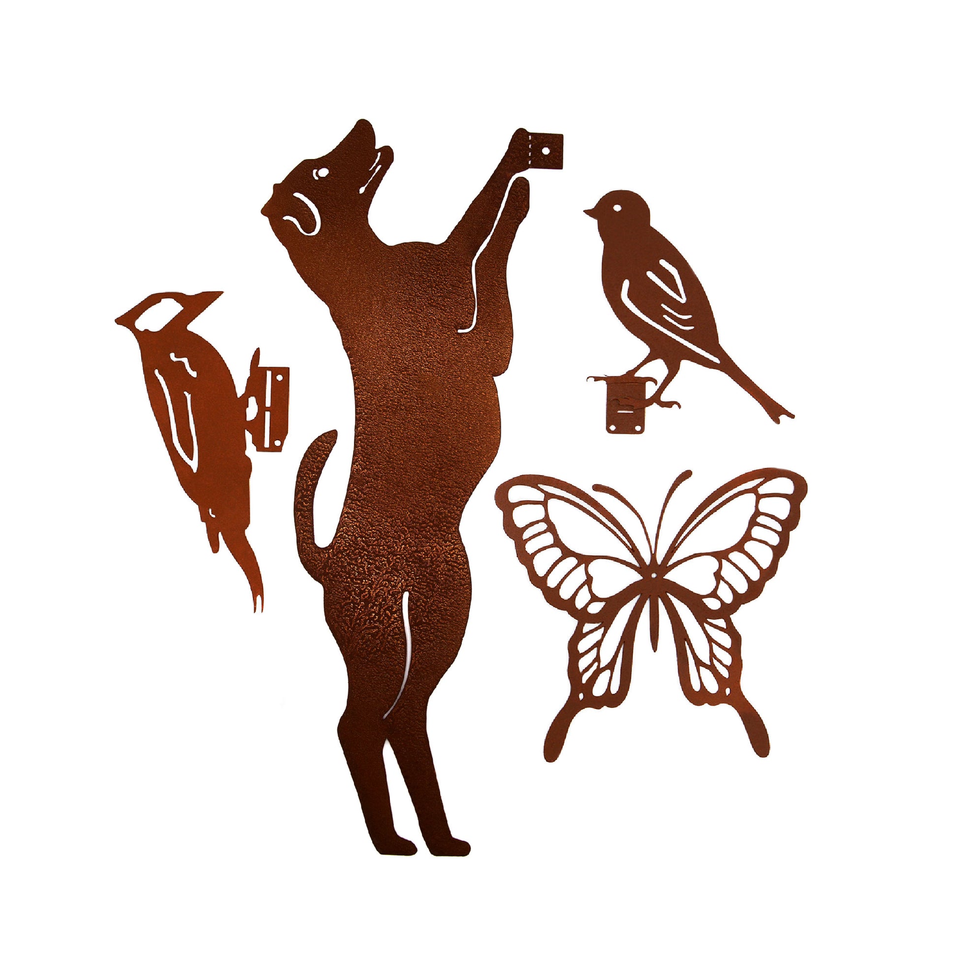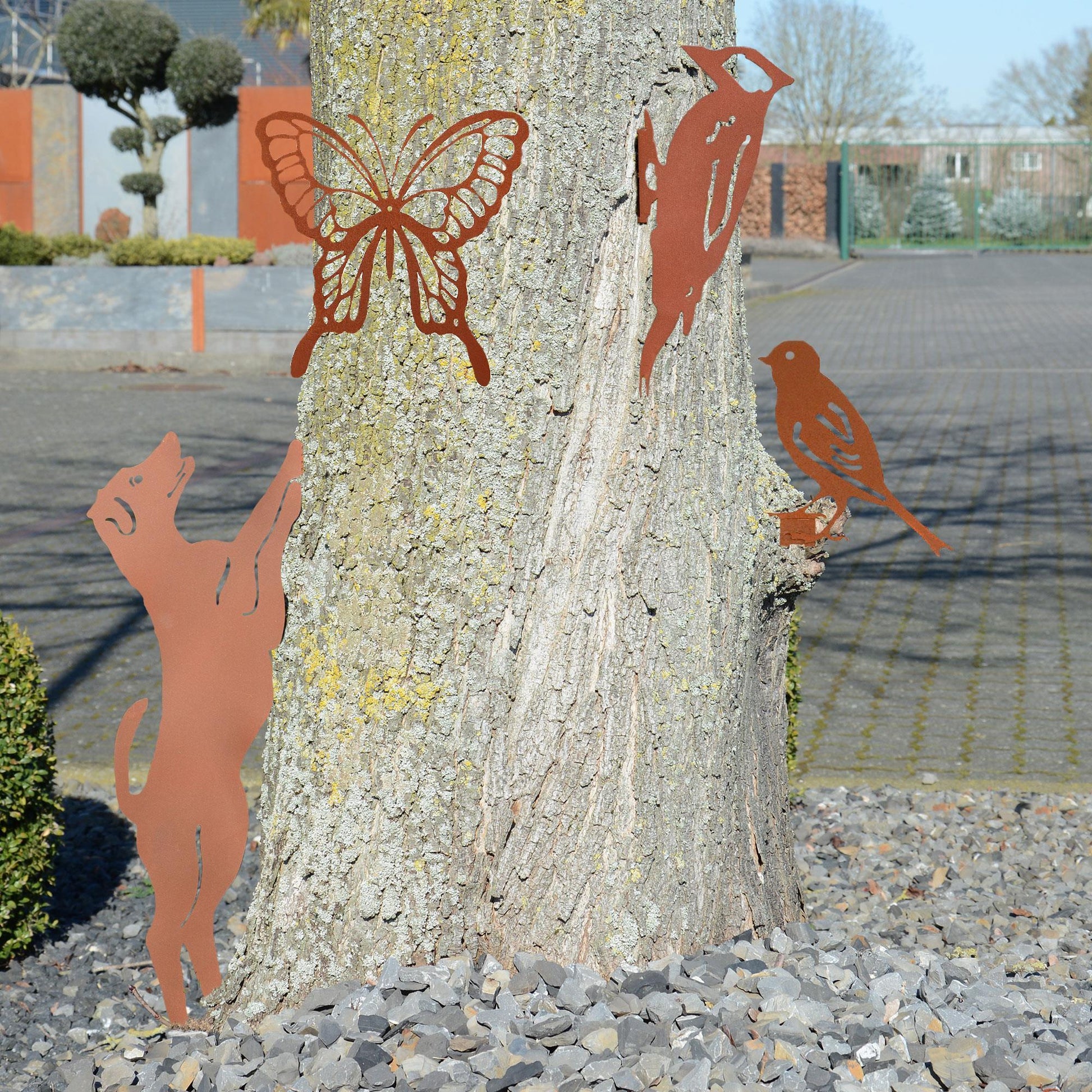 Baumstecker 4er Set in Rostoptik: Hund, Vogel, Schmetterling und Specht für Ihren Gartenzauber!