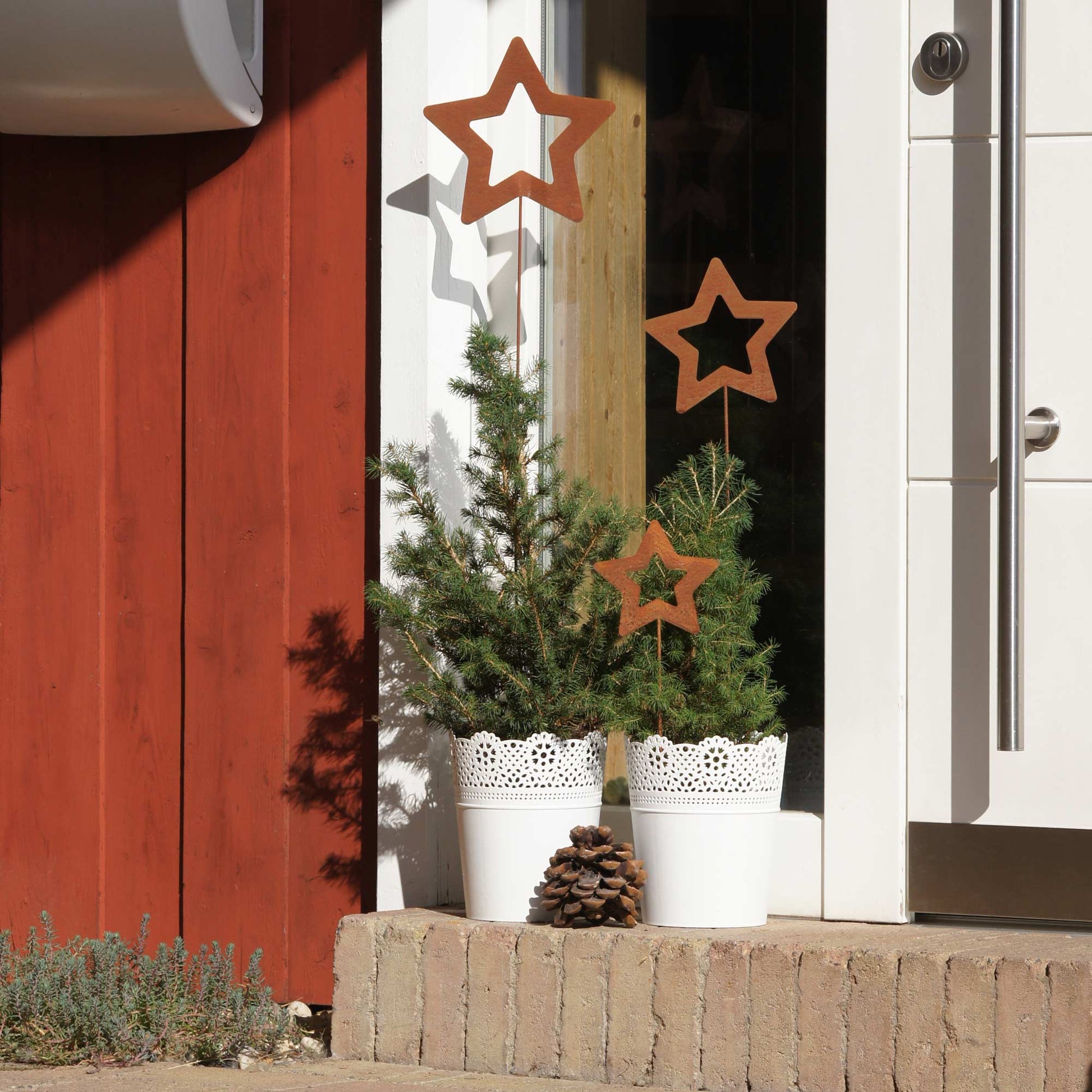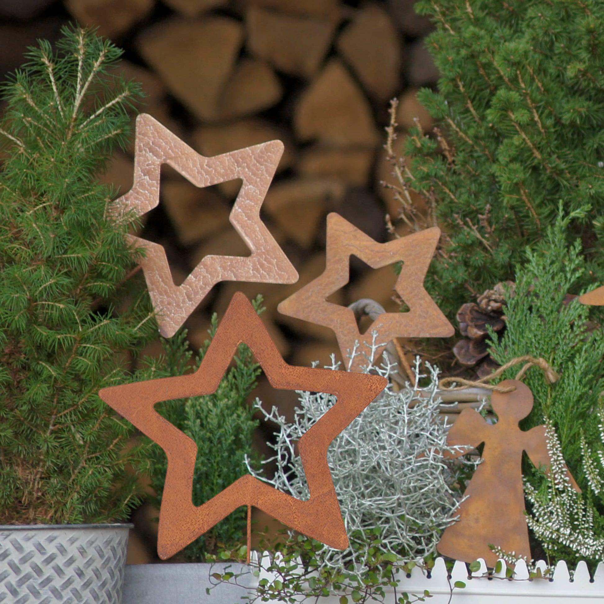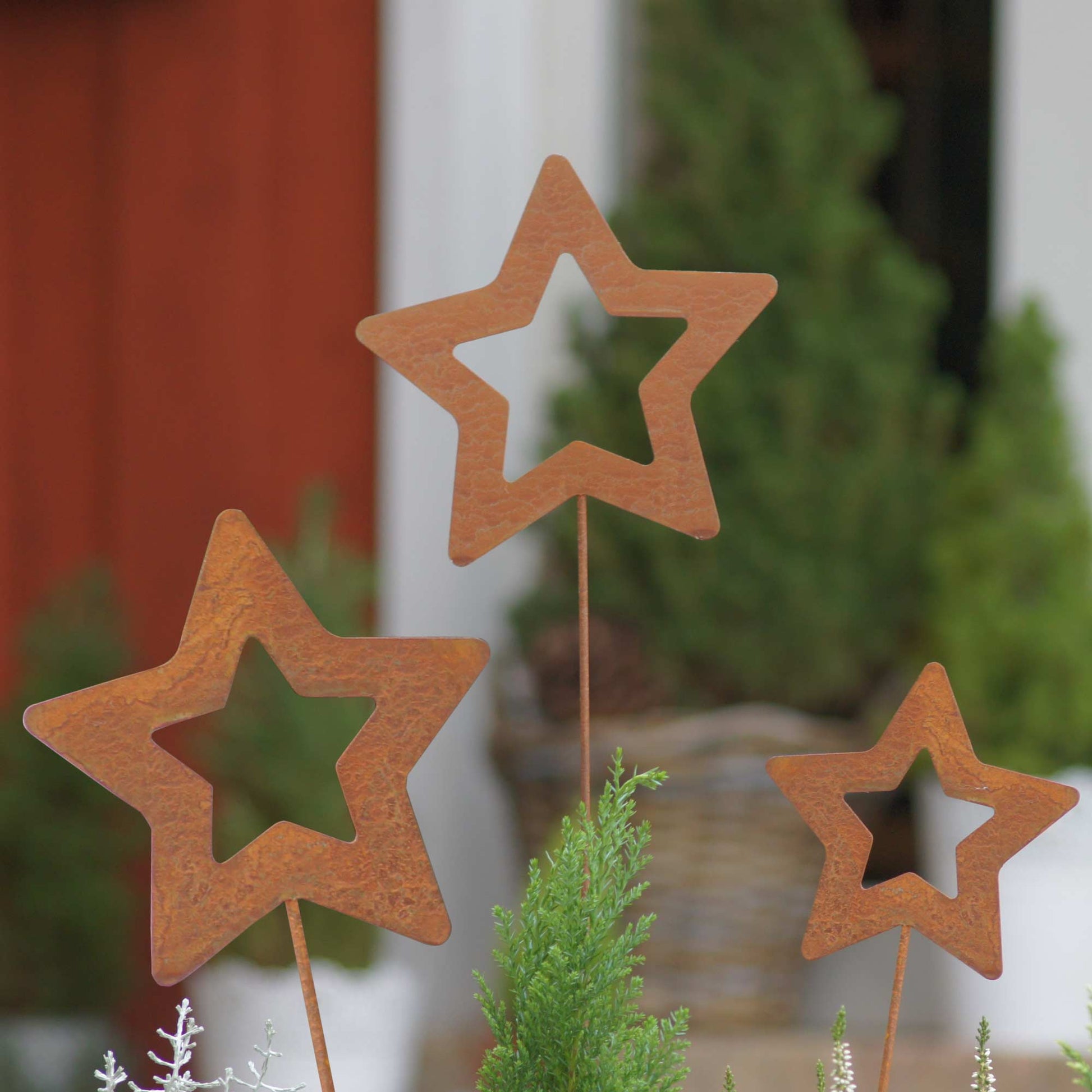 Die Sterne sind aus hochwertigem Edelrost-Metall gefertigt und werden im praktischen 3er Set geliefert in drei unterschiedlichen Größen.