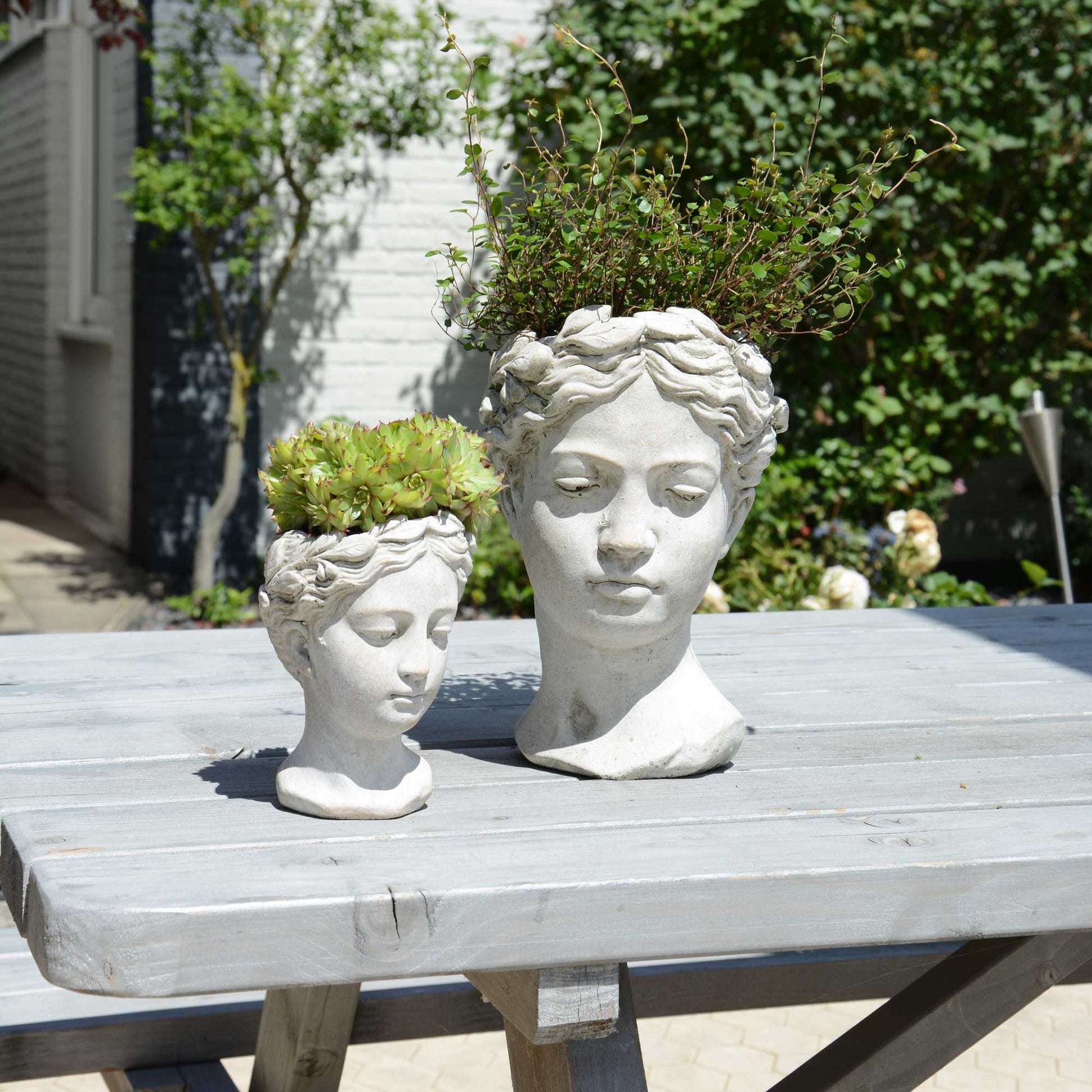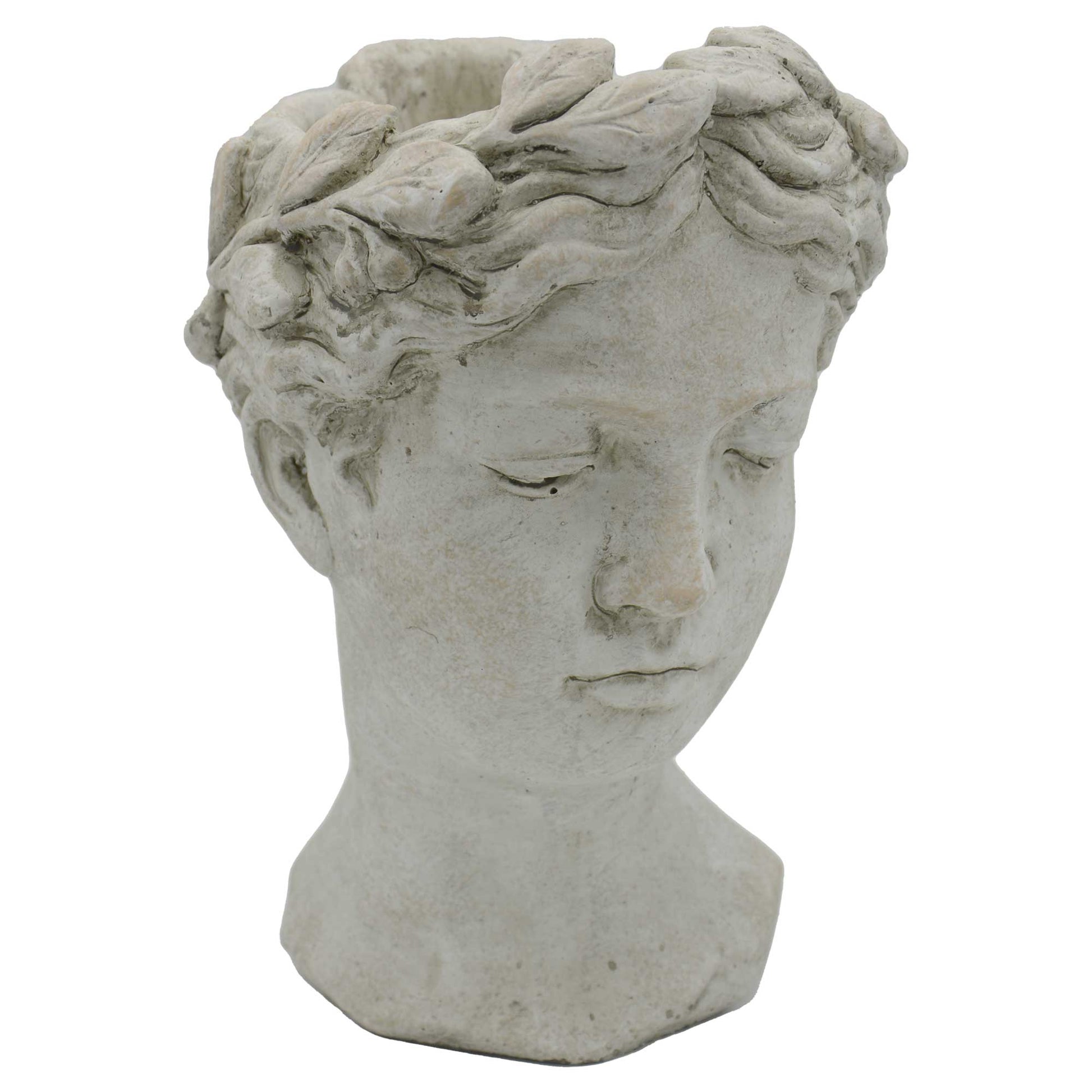 Die Pflanzbüste aus Beton eignet sich sowohl zur Dekoration im Außenbereich als auch im Wohnbereich. Der Blumentopf verfügt über eine Öffnung auf dem Kopf, um dort Blumen oder Pflanzen einzusetzen.