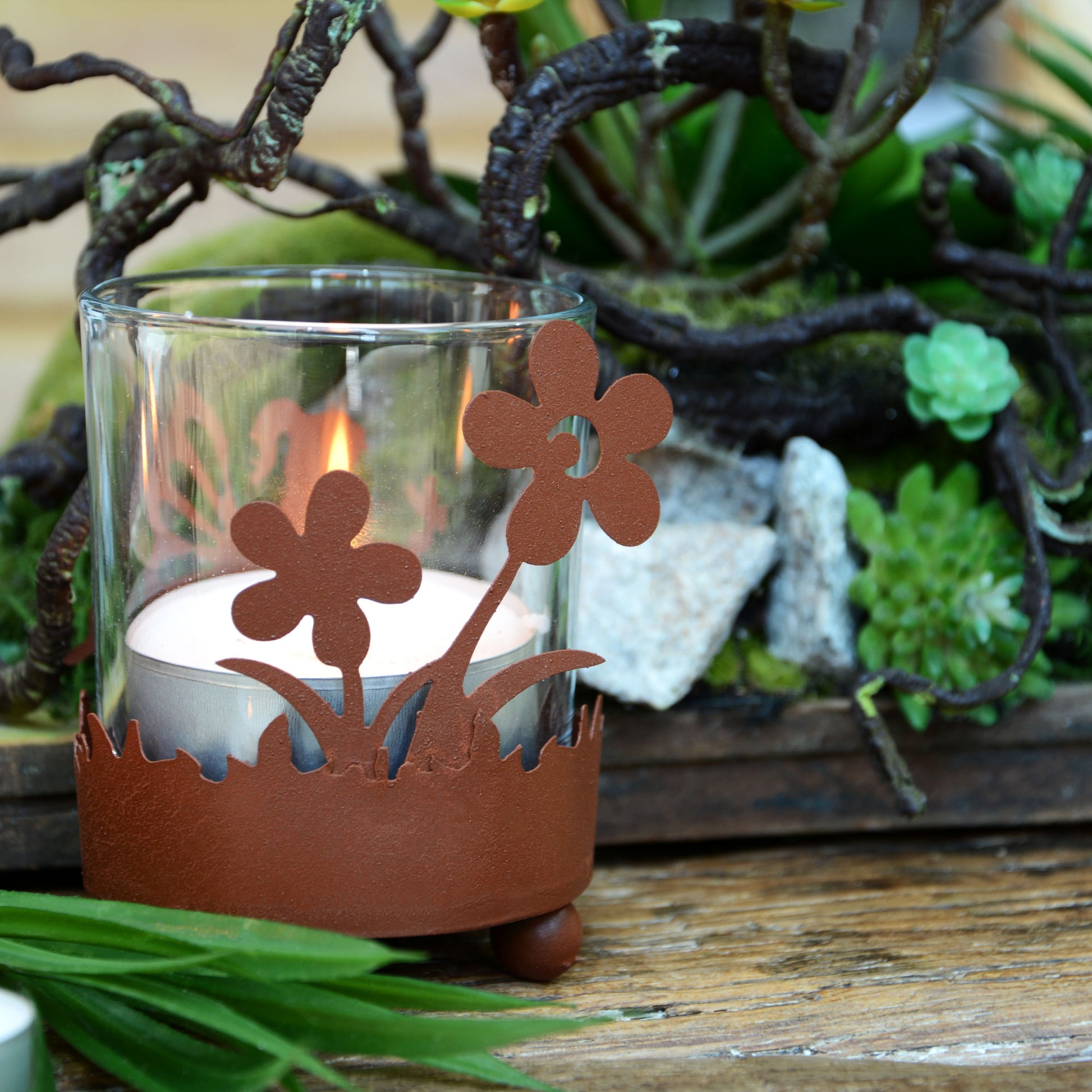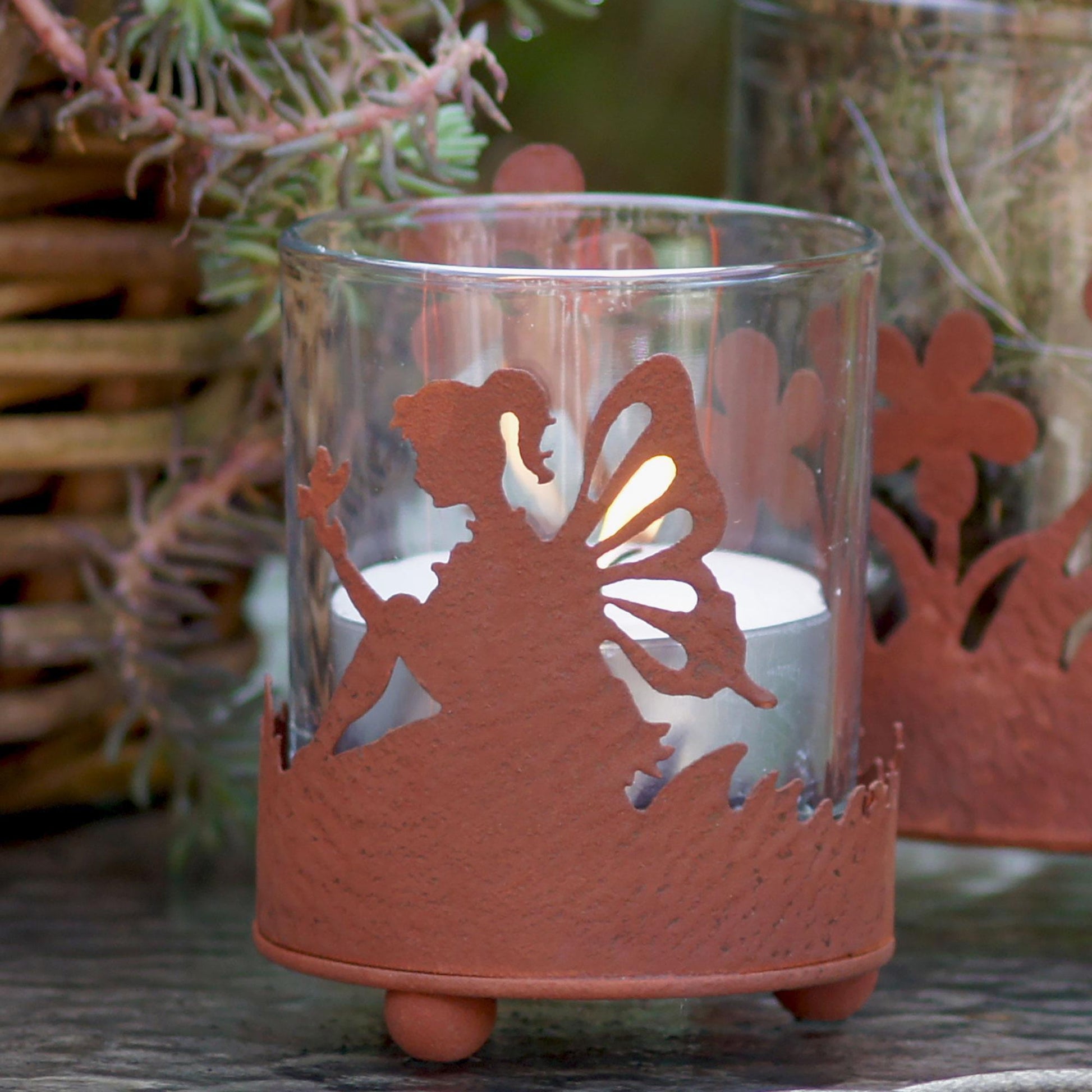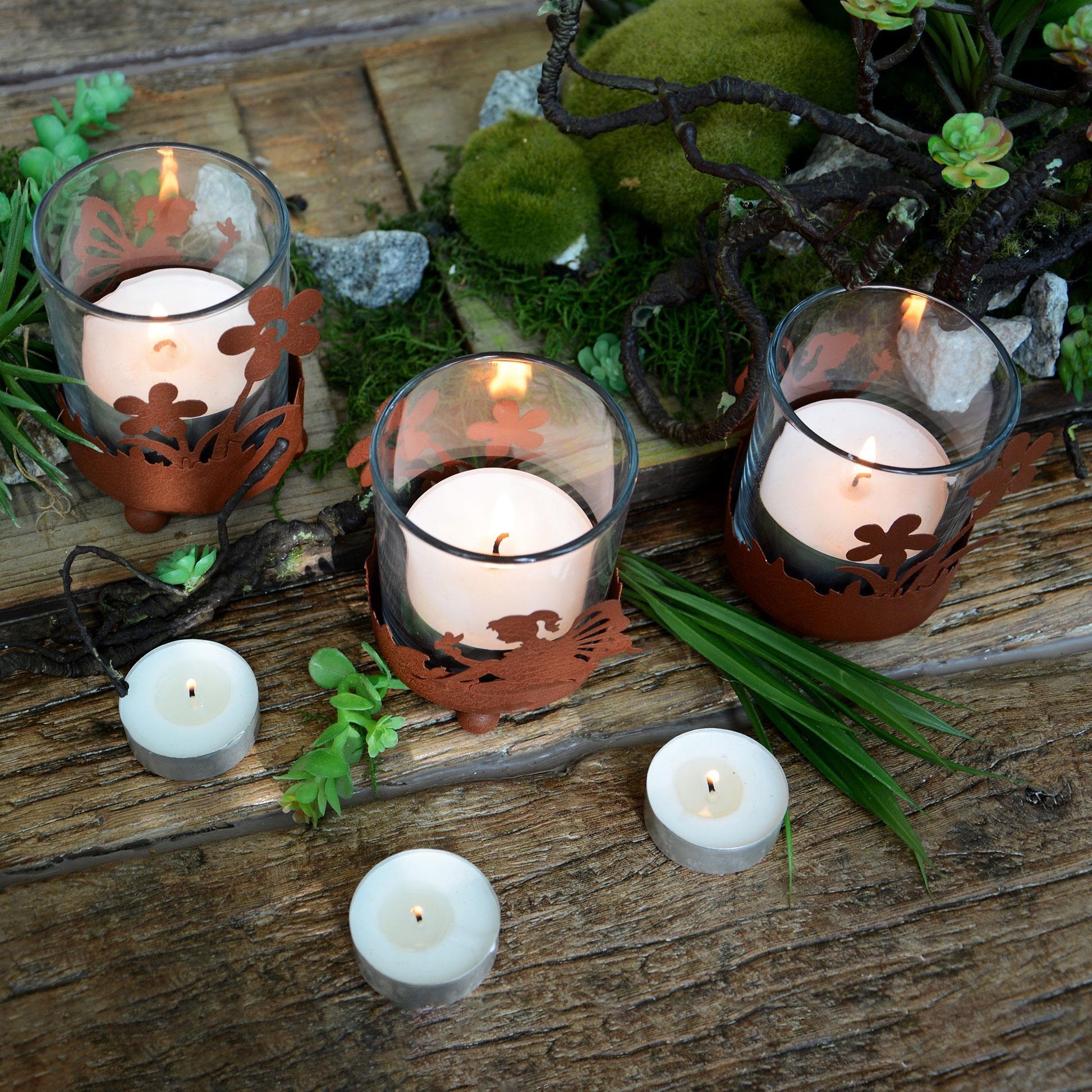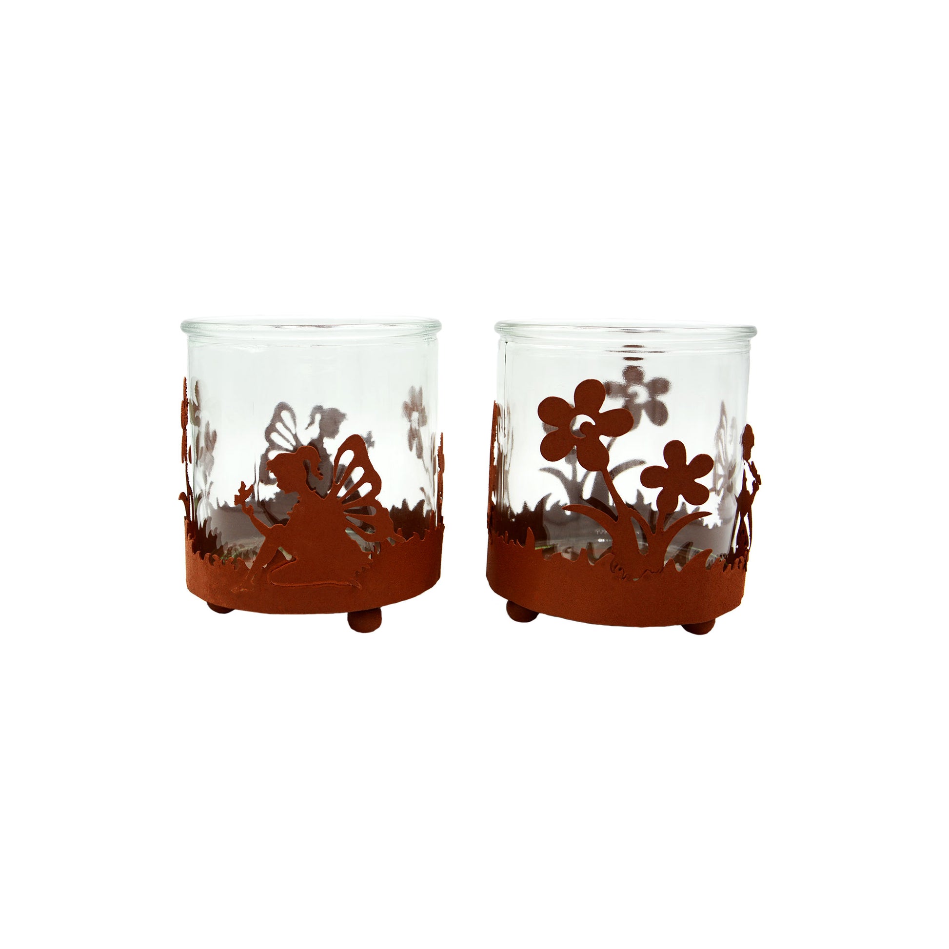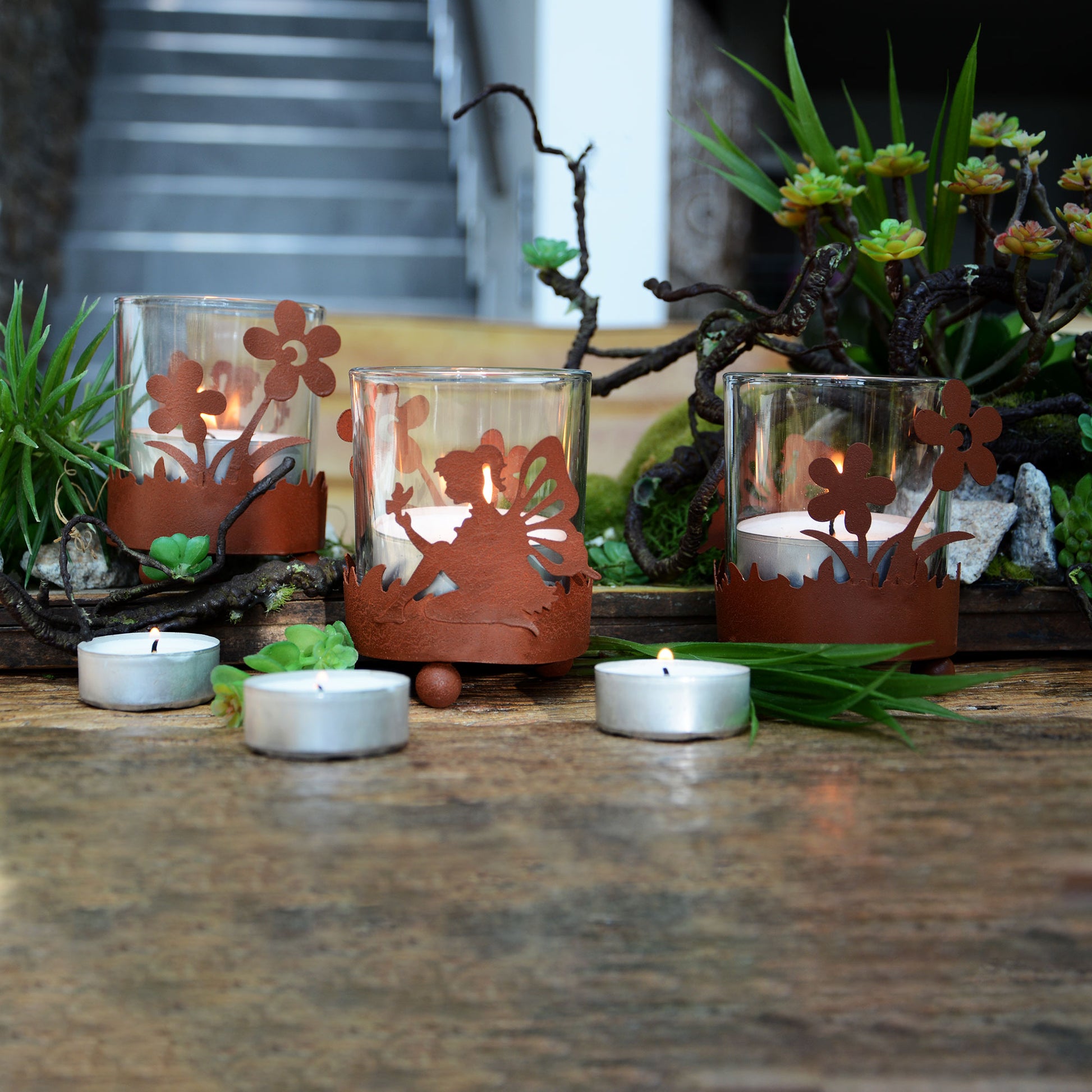 2er/3er Set Windlichter mit Rostoptik, Glas-Einsatz, Fee und Blume - Verleihen Sie Ihrem Zuhause rustikalen Charme und märchenhafte Stimmung, sowohl drinnen als auch draußen!